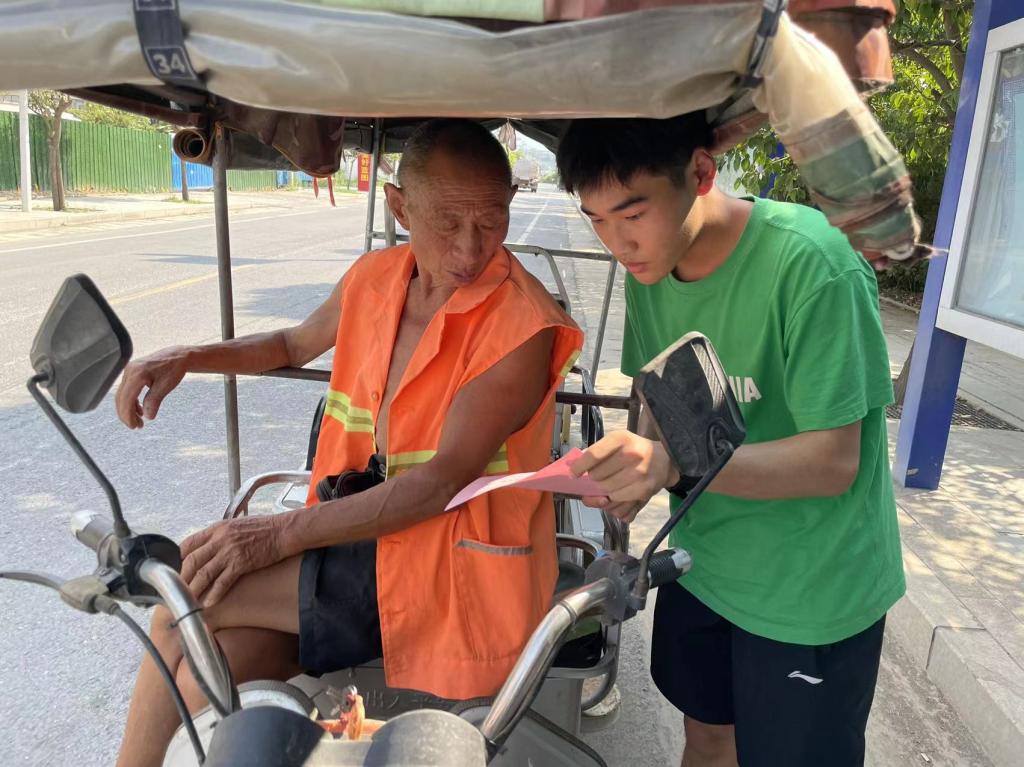 为增强老年群体防诈骗“免疫力”,共筑防诈“新长城”,建工学院梦想种子计划小分队在辅导员杜伟老师的指导下于7月9日来到郑州市荥阳市刘河镇对老年群体进行防诈骗宣传。