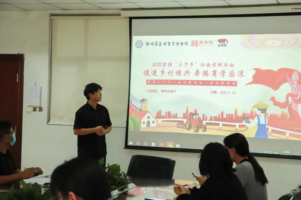 会上,各实践团队负责人依次登台,通过PPT、视频等方式,分别从实践背景、实践过程、实践成果、收获启发等方面进行实践活动汇报与展示,展现升达学子在暑期社会实践中的青春风采。各学院团委负责老师介绍本学院社会实践组织开展情况,工作思考等。商学院社会实践团队周世佳同学说,“通过参加商学后浪行暑假实践三下乡活动,自己的专业与实践活动得到了充分结合,自己对专业知识的认识也得到了加强”。