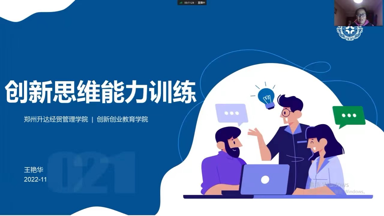 11月23日,应校团委邀请,我校创新创业教育学院王艳华老师为青马工程——“力行实验班”学员作题为《创新思维能力训练》报告。青马工程全体学员参加本次培训,培训以线上方式进行。