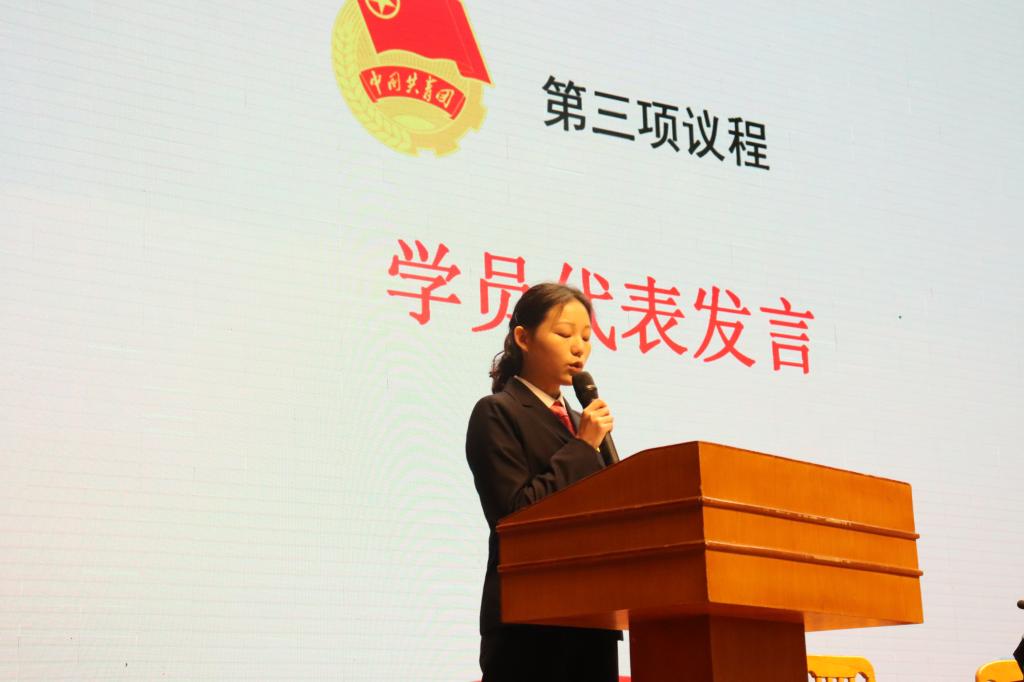 大会伊始,校国旗班执旗手迈着铿锵有力、整齐划一的步伐,走向主席台,庄严展示国旗,与会人员全体起立,齐唱中华人民共和国国歌。校团委副书记李雷宣读了2023年度全校团学干部教育培养工作方案;“青马工程”暨团学干部骨干教育培养班学员张金珠、团支部书记教育培养班学员朱柯云代表参训学员作表态发言。