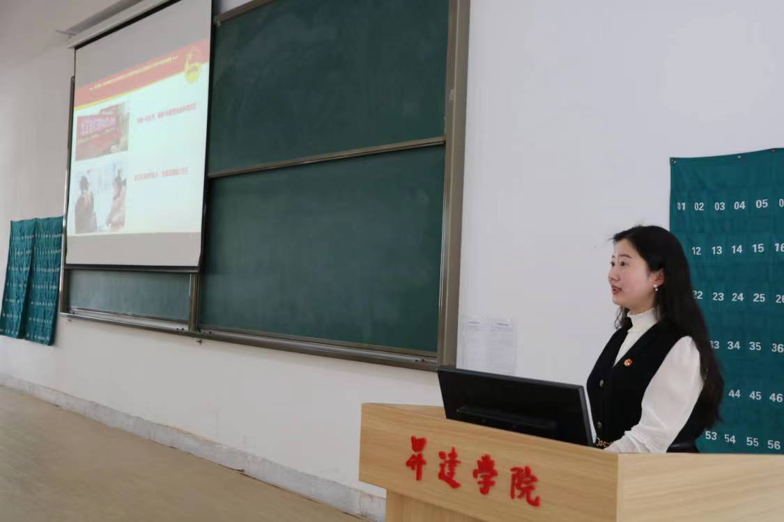 3月29日下午,“豫见理响”河南共青团党的二十大精神专题宣讲走进“青马工程”暨团学干部骨干教育培养班,省管高校学习宣传贯彻二十大精神河南青年宣讲小分队成员、我校会计学院19级年级团总支书记孟醒老师在教学四号楼118教室为同学们作题为《踔厉奋发担使命,青春建功正当时》专题宣讲。
