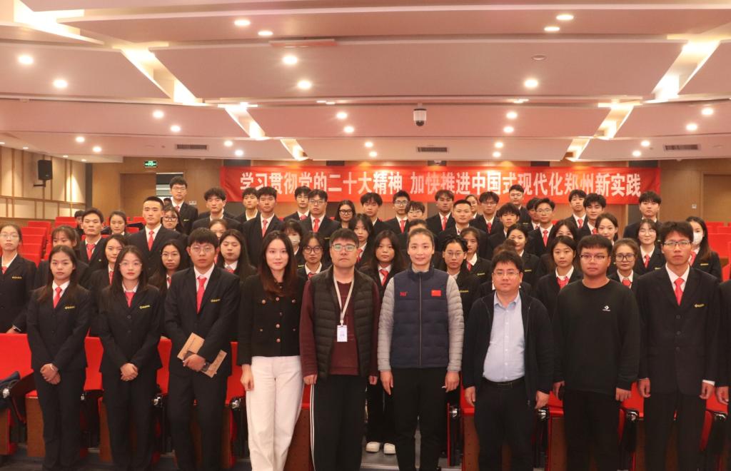 为落实学校文化育人工程和传承传播爱国主义文化,用青年的典型人和典型事教育青年人,2023年11月9日下午,河南籍奥运健将、国家空手道运动员、亚运会空手道冠军、奥运会空手道亚军尹笑言受邀莅校作“披荆斩棘永不言弃,家国情怀勇争荣誉”专题报告。校团委机关干部、青马工程“力行班”学员、校国旗班队员代表、体育类学生社团代表等参加报告会。报告会由校团委书记李霄锋主持。
