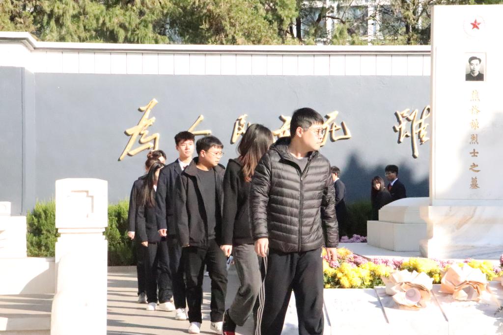 在焦裕禄烈士纪念园讲解员的带领下,青马工程“力行班”全体学员拜谒焦陵,在焦裕禄烈士墓前,校团委李雷副书记和马悦老师代表校团委和“力行班”全体学员向焦裕禄烈士敬献花篮,全体学员集体向焦裕禄烈士墓三鞠躬,绕行并瞻仰了烈士陵墓。随后,在焦裕禄同志纪念馆前,重温入团誓词,并合影留念。