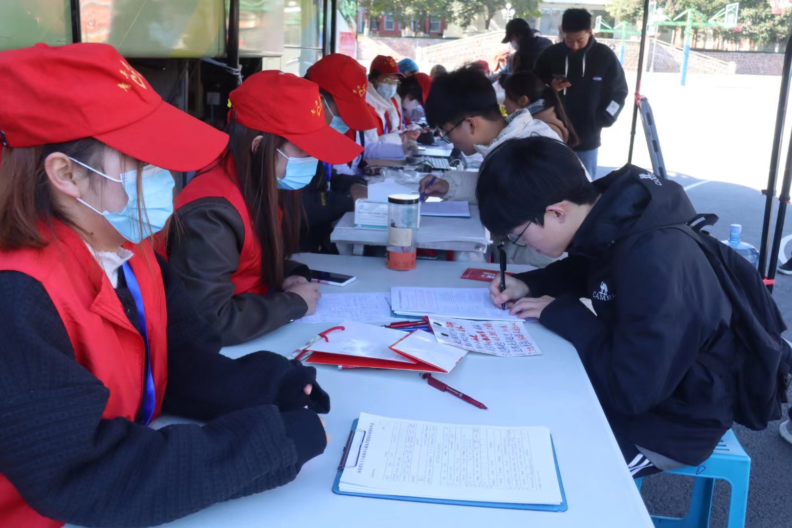 活动当天,3辆采血车进校开展采血工作,我校广大师生热情高涨,踊跃参与。现场划分检测区、等待区、献血区、休息区,志愿者们在各自负责区域协助血站人员,为献血师生提供帮助,做好体温监测,饮水提供、秩序维护等工作,采用“互联网+无偿献血”模式,有序组织线上预约、排队登记,保障现场井然有序。