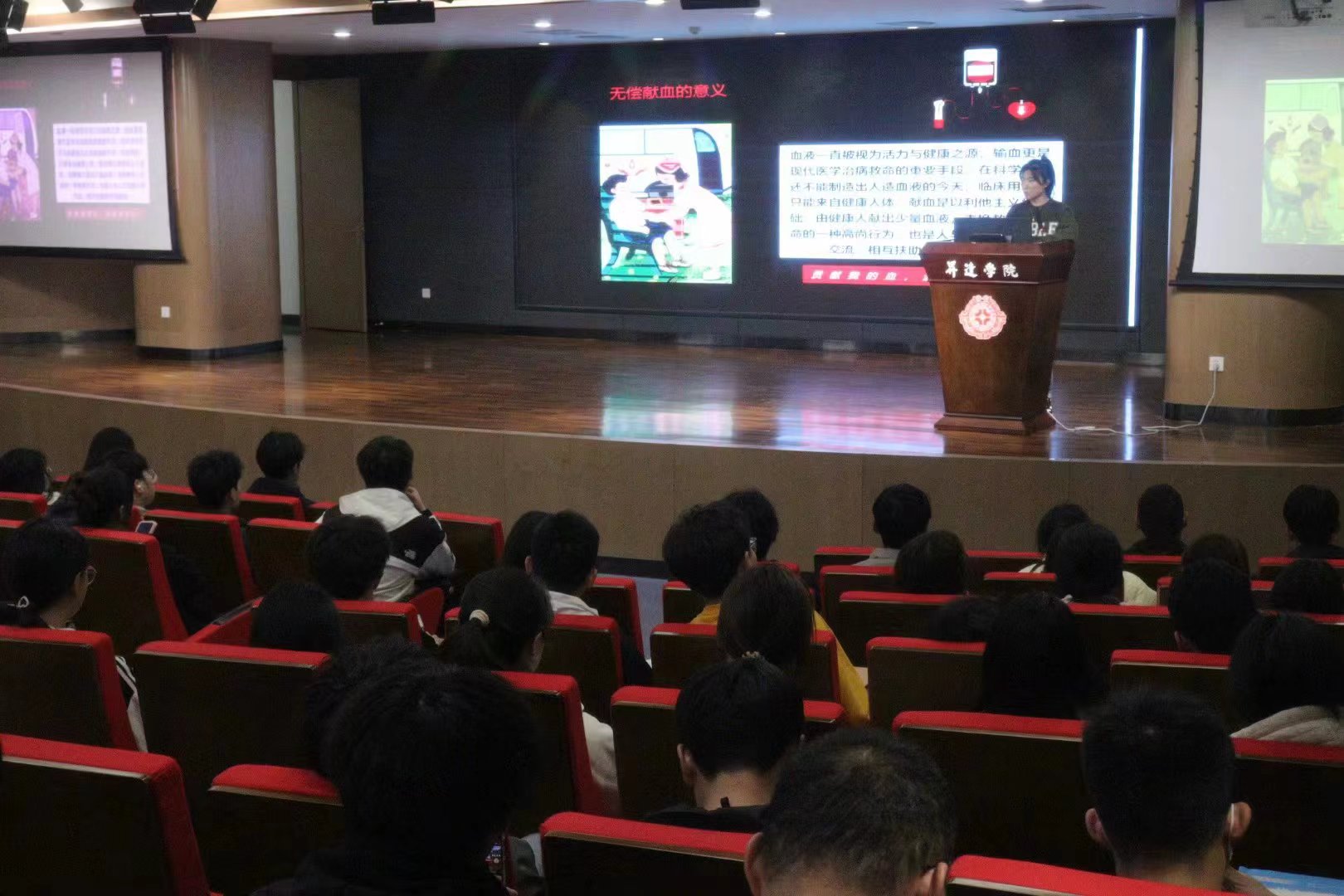 活动前期,校团委、校青年志愿者协会通过网络新媒体、展板、条幅、咨询台等方式,对无偿献血相关知识进行宣传引导,邀请河南省红十字血液中心的讲师为我校师生讲解无偿献血暨造血干细胞知识,并对志愿者进行培训。