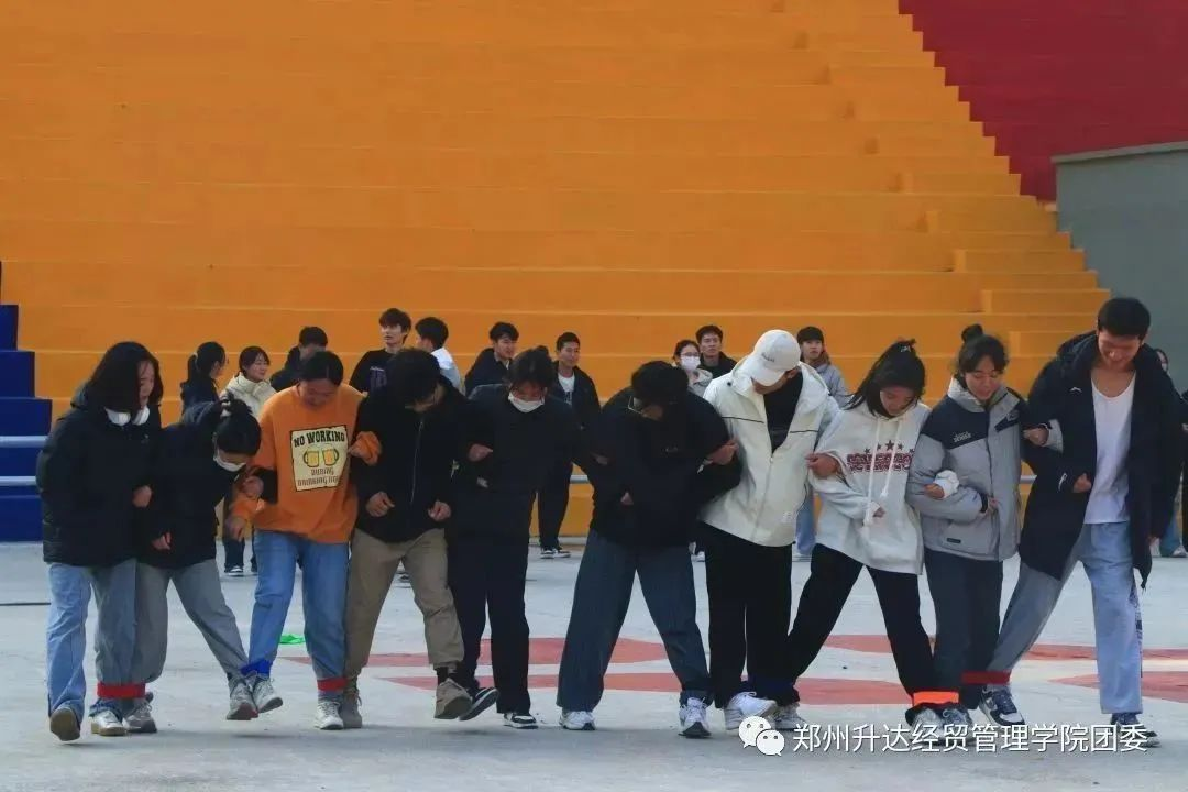 活动进行到第三项“齐心协力”,队员们列为一排,以“两人三足”式前进,28届第一组和29届第一组率先开始比赛,各组紧随其后,加油助威声此起彼伏,激动人心。