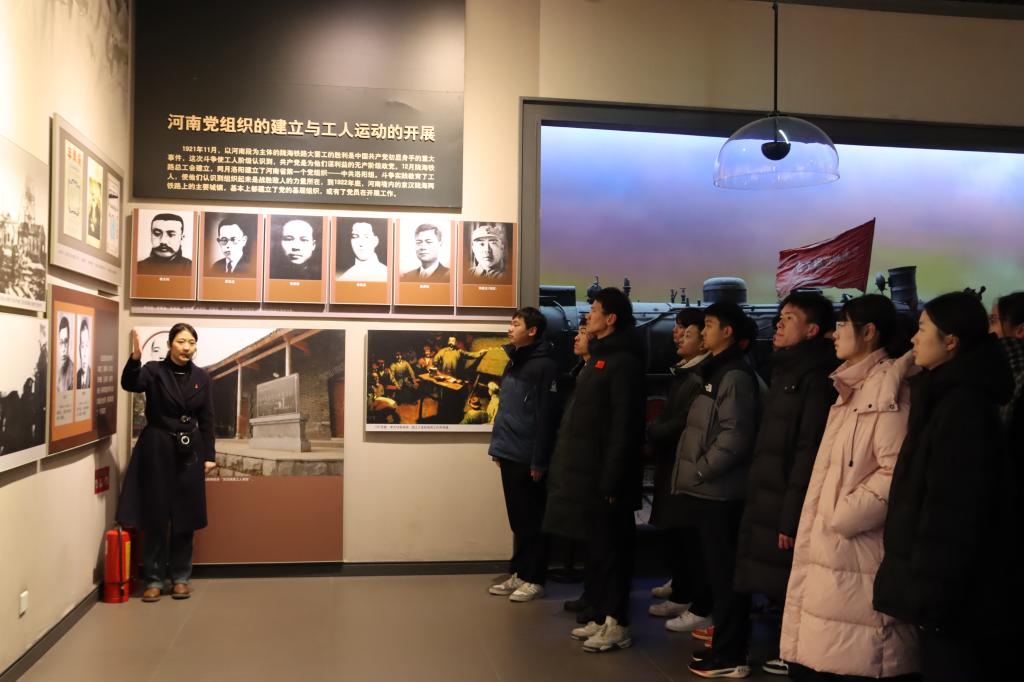 仪式结束后参观中原英烈纪念馆,讲解员介绍河南的抗战经历,抗战年间著名战役,以及在抗战时期为追求革命理想而献身的烈士事迹。