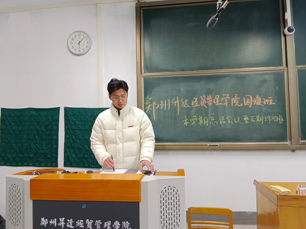 为促进国旗班队员之间的团结合作,总结本学期相关升旗及训练工作,为后期工作做详细安排。12月22日,郑州升达经贸管理学院国旗班于综合楼119教室召开学期总结会议暨后期工作安排。本会议由国旗班班长魏庆飞主持,28届国旗班班委、28届国旗班队员、29届国旗班预备队员参与会议。