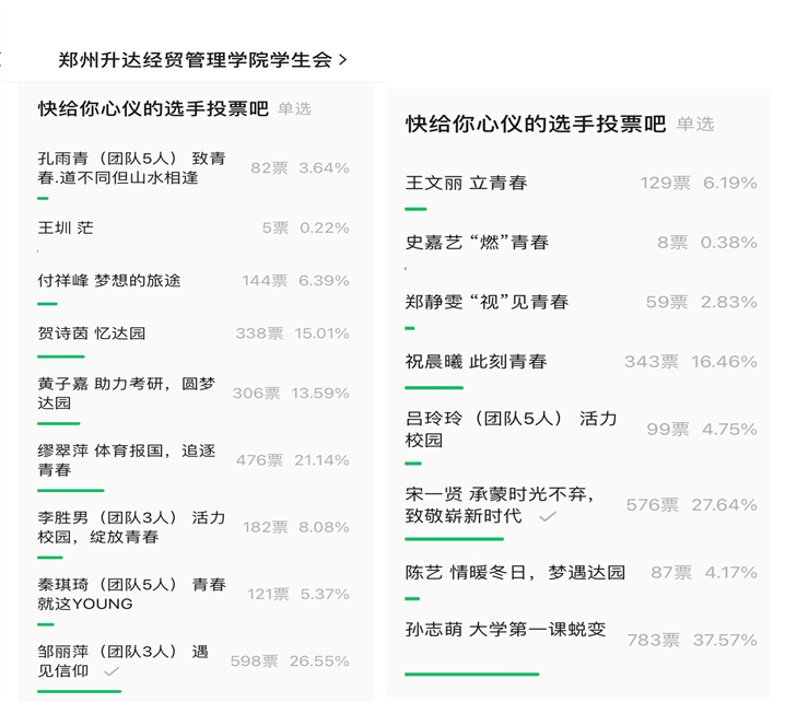 本次大赛共收到作品70余份,经校学生会初审,党委宣传部、校团委复审,16个作品通过评审进入为期三天的线上投票环节,最终产生一等奖1项、二等奖3项、三等奖3项和优秀奖4项。