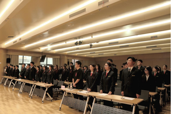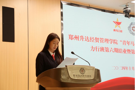 仪式在激昂的中国共产主义青年团团歌中拉开序幕。校团委社团管理部部长张思昱宣读了第六期青马工程“力行班”结业学员名单,校团委宣传部部长马悦为结业学员代表颁发了结业证书,校团委实践部部长崔译文宣读了第七期青马工程“力行班”的学员名单。