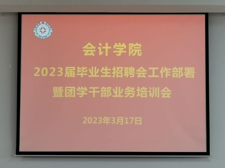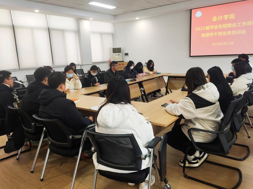 为贯彻落实会计学院关于做好2023届毕业生就业工作的目标,全力促进会计学院2023届毕业生尽早就业、充分就业,会计学院于2023年3月17日12:30在教学4号楼209会议室召开毕业生招聘会工作部署暨团学干部业务培训会。参加此次会议的有会计学院行政秘书兼团委书记陈刚老师以及28届团学组织主要干部。