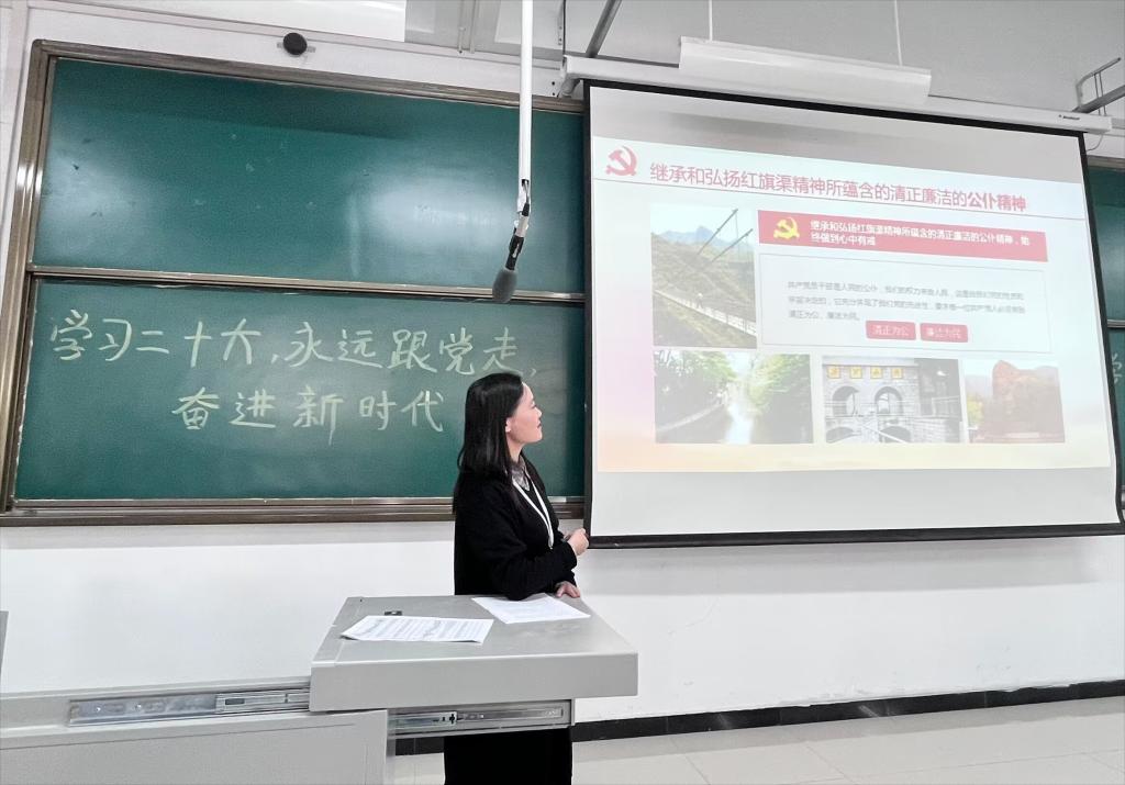 3月30日下午,“豫见理响”河南共青团党的二十大精神专题宣讲走进“青马工程”暨团学干部骨干教育培养班,省管高校学习宣传贯彻二十大精神河南青年宣讲小分队成员、我校建工学院团委副书记郭艳在实训大楼608教室为同学们作题为《弘扬红旗渠精神 做新时代有为青年》专题宣讲。校、院两级青马班学员和团学干部骨干成员参加此次宣讲。
