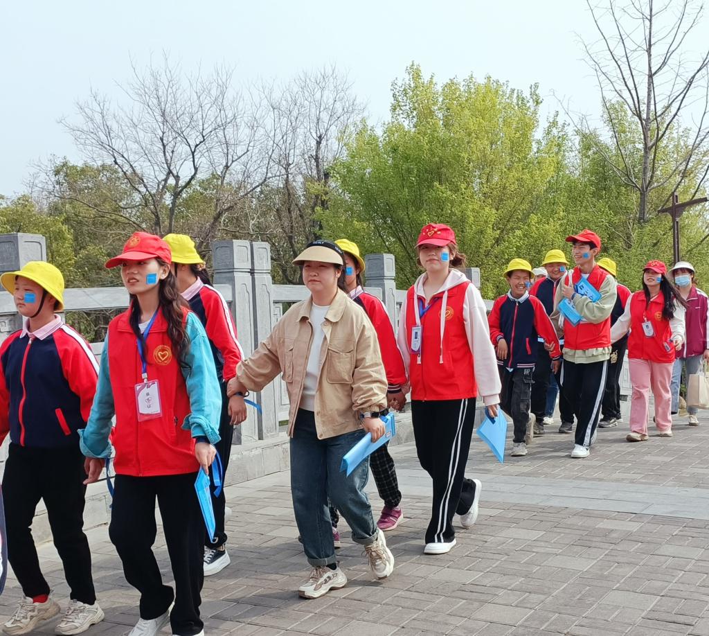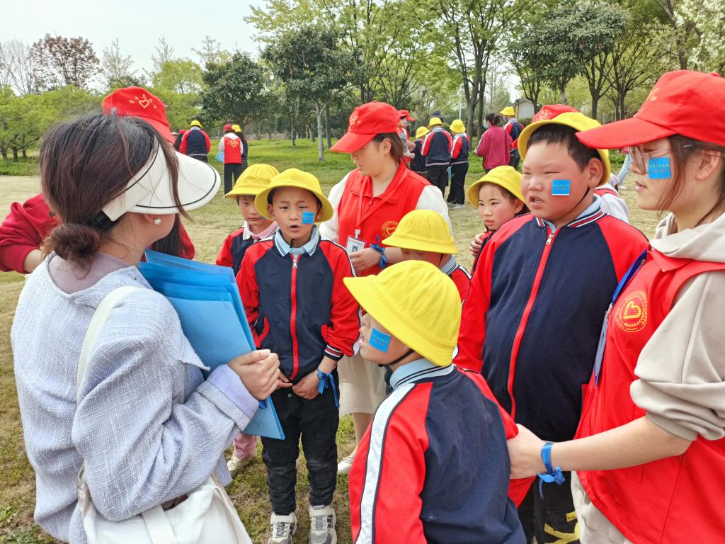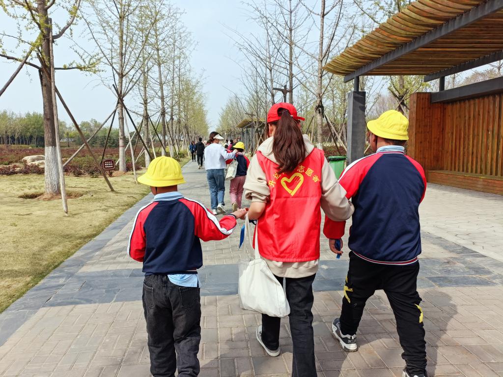 为保证活动的顺利开展,我校青年志愿者团队与航空港区益智学校在前期进行了多次沟通,不断完善活动策划沟通活动流程。活动开展的当天下午,志愿者们按时到达了航空港区益智学校,该校的校长、负责老师向志愿者介绍了参与孩子的基本情况,并交代了注意事项。活动伊始,志愿者配合该校教师为孩子们佩戴了代表鼓励、关怀和爱的蓝丝带,并贴上了蓝色贴纸,随后看护着孩子们一同前往苑陵古城广场开展活动。在到达指定地点后,各个班次排好队清点人数,负责老师以班为单位为大家发放“大自然寻宝”任务清单,志愿者根据清单内容带领孩子们一同进行“寻宝”。在活动过程中,志愿者积极与孩子们进行交流沟通。活动结束后,孩子们争相展示自己的成果,脸上洋溢着甜蜜的笑容。