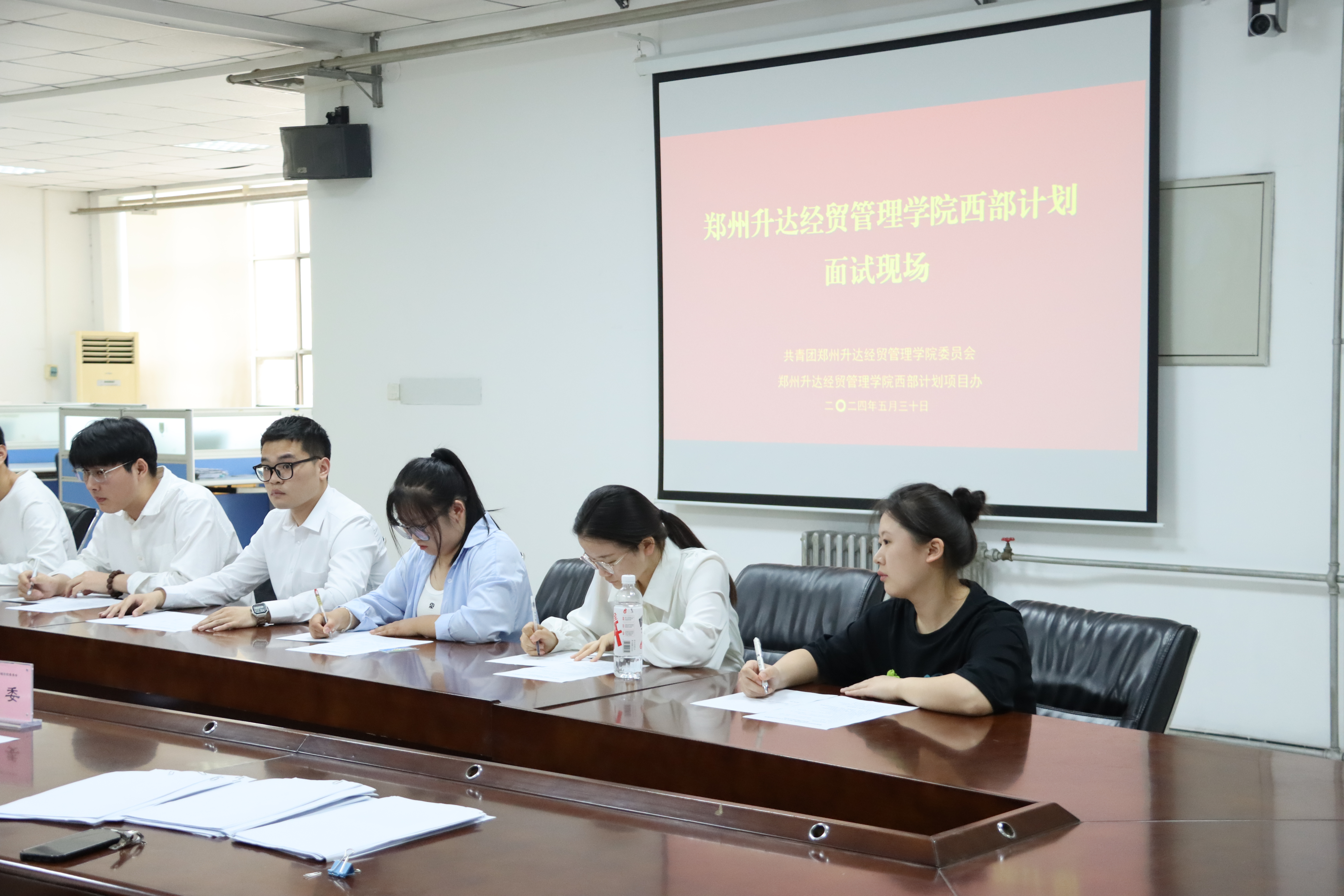为进一步选拔出优秀志愿者,面试于5月30日进行。校团委、我校西部计划项目办邀请第三方部门及教师担任面试评委,面试人员到达候考室签到后统一上交手机,根据安排进行面试,评委们结合考生对西部计划的认知程度、服务态度、随机应变能力以及语言表达能力等进行综合评定。