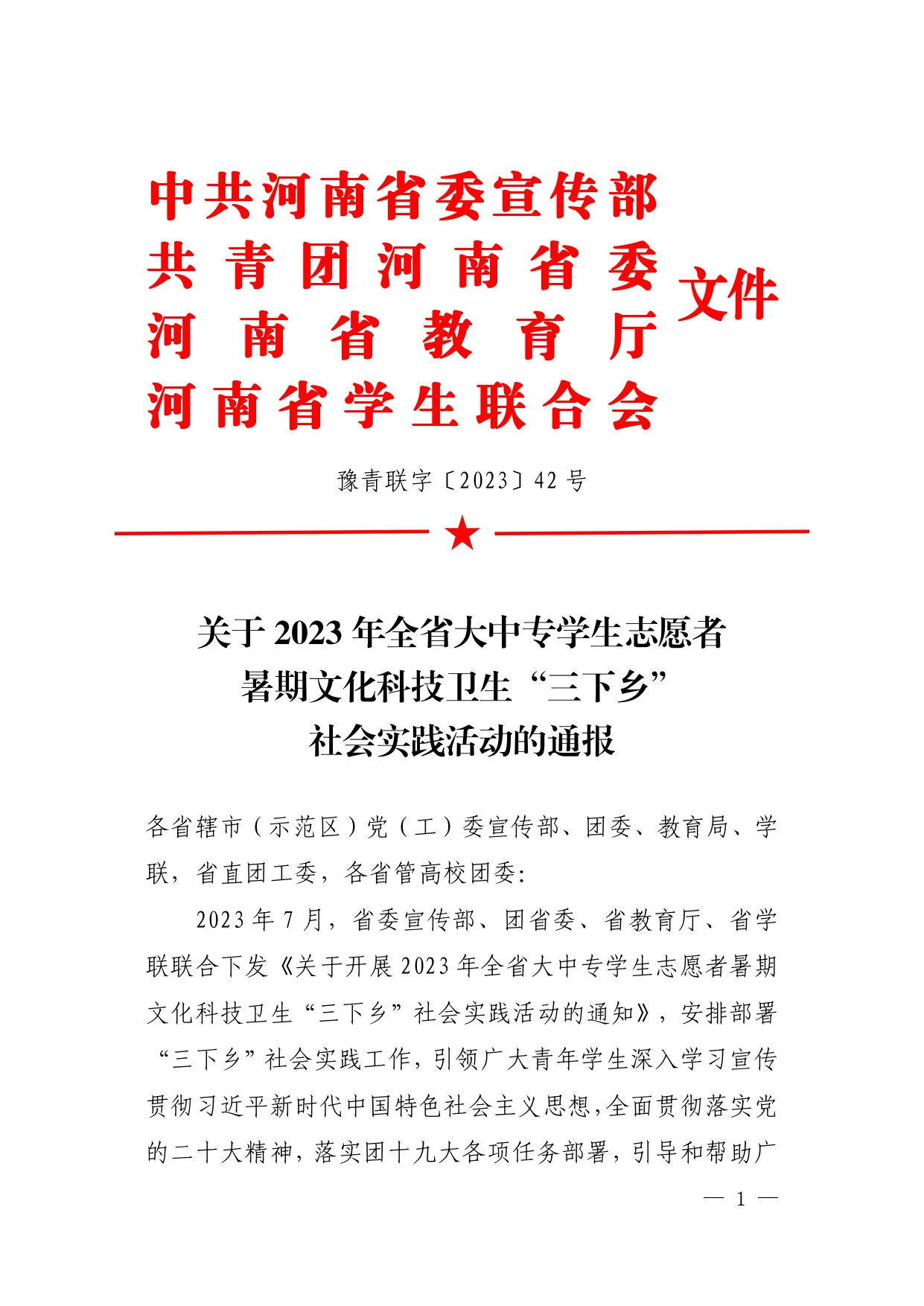 2023年暑期,我校共青团紧扣“学习二十大 永远跟党走 奋进新征程”主题,坚持社会实践与社会观察、志愿服务、专业学习有机结合,按照“目标精准化、工作系统化、实施项目化、传播立体化”和“按需设项、据项组团、双向受益”的原则,围绕理论普及宣讲、党史学习教育、乡村振兴、红旗渠精神实践等方面深入开展了暑期“三下乡”社会实践活动,全校广大团员学生以团队或个人形式,深入农村和基层,通过“入村政策宣讲”、“乡村爱心助教”、“黄河生态保护”等多种途径,将社会实践落到了实处。