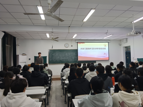 3月9日晚,国旗班在综合楼203教室召开原天安门广场三军仪仗队海军护旗手曾嵘同志莅校指导总结班会,组织委员张元思主持此次会议。