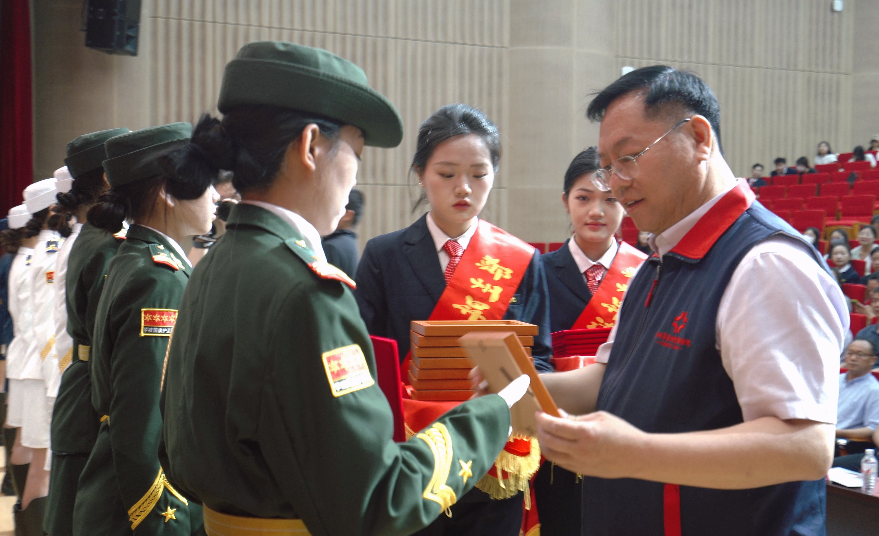 张金安副校长为第28届国旗班队员代表颁发了“优秀国旗卫士”荣誉证书和纪念奖章。第28届国旗班是建校以来服役时间最长、训练时间最长、承担任务最重的一届,上千次的升降旗,记不清的训练时长,每次出席任务背后的辛酸苦辣,全校师生记得他们、关注他们、感谢他们。