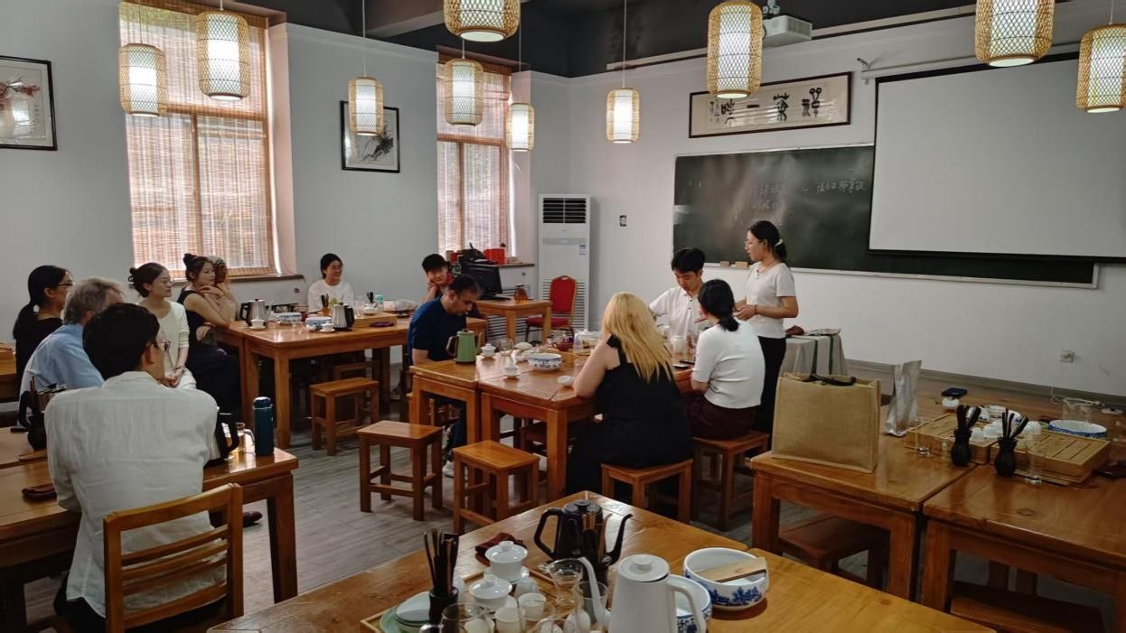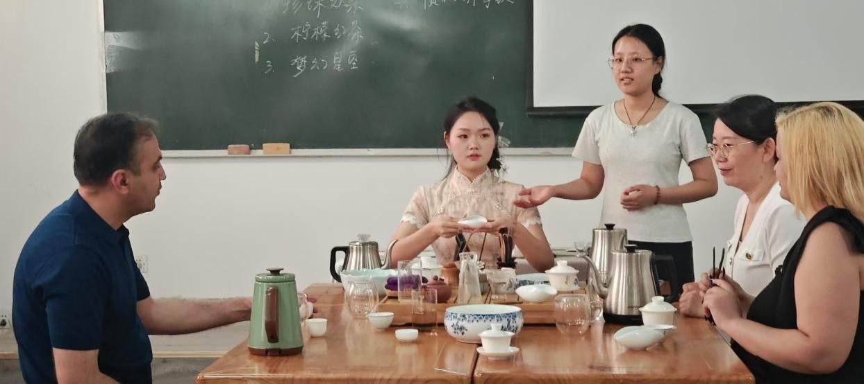 2025年5月29日14:00-15:00,由校团委社团管理部主办、昇茗茶艺社承办的“东方礼茶,世界共鸣”活动在茶文化学院品茶室顺利举办。活动邀请来自美国、英国、日本等国的数位外教老师共同体验中国茶文化的独特魅力。通过茶艺展示、亲手冲泡、传统茶点品鉴等环节,外教老师们深入了解了东方茶艺的精髓,搭建起中外文化交流的温馨桥梁。