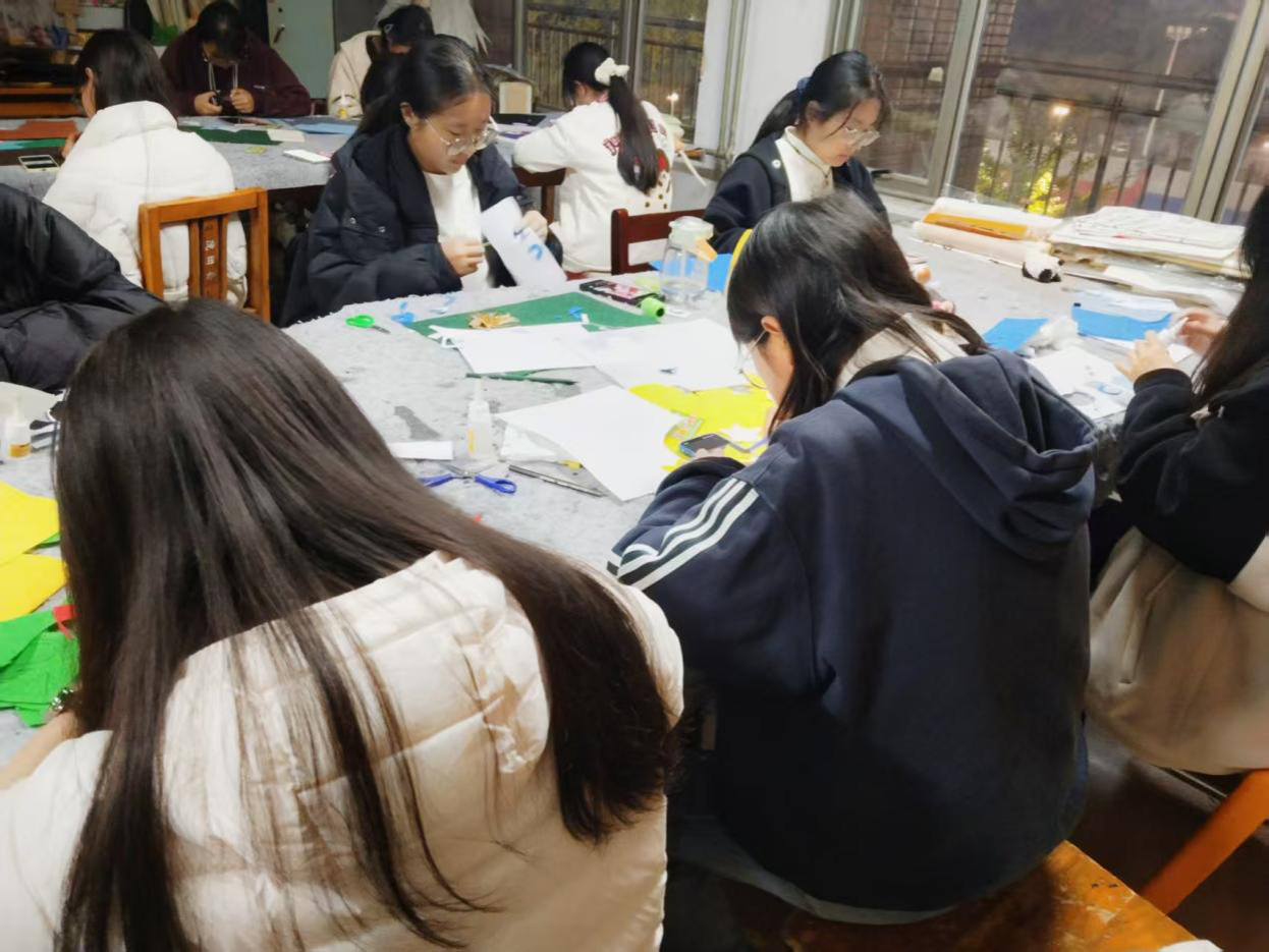两个小时的活动很快接近尾声,同学们纷纷展示自己的成果:色彩鲜艳的挂件、造型别致的支架、充满创意的徽章,每一件作品都带着独特的个人风格。活动最后,手工社还收集了同学们的反馈,为后续活动的开展积累经验。