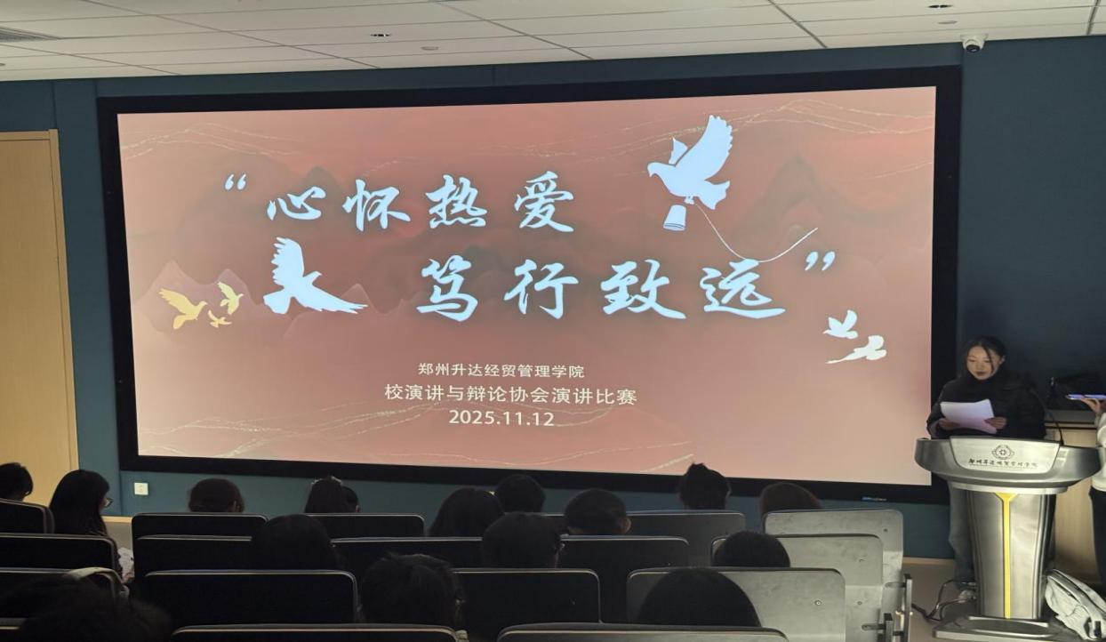 2025年11月12日,由郑州升达经贸管理学院校团委社团管理部主办,校演讲与辩论协会承办的主题为“心怀热爱,笃行致远”的演讲比赛成功举行。此次比赛为青年学子搭建了一个展示初心,交流经验,寻觅同行者的多元平台。本次“心怀热爱,笃行致远”演讲比赛面向郑州升达经贸管理学院全体学生开展,有许多对演讲感兴趣,对比赛主题有想法的同学积极参加。