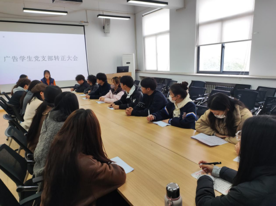 11月16日商学院广告学生党支部在学院会议室315召开党员转正大会,会议旨在讨论并表决近期申请转正的预备党员是否符合转为正式党员的条件。此次大会由党支部书记胡好好主持,全体党员参加了会议。