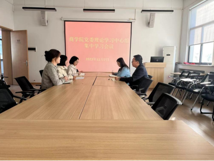 2023年11月7日上午,商学院党委理论学习中心组在教学2号楼315室开展集中学习,传达学习习近平总书记对宣传思想文化工作作出的重要指示和全国宣传思想文化工作会议精神。会议由党委副书记白朋飞主持,商学院党委委员参加。