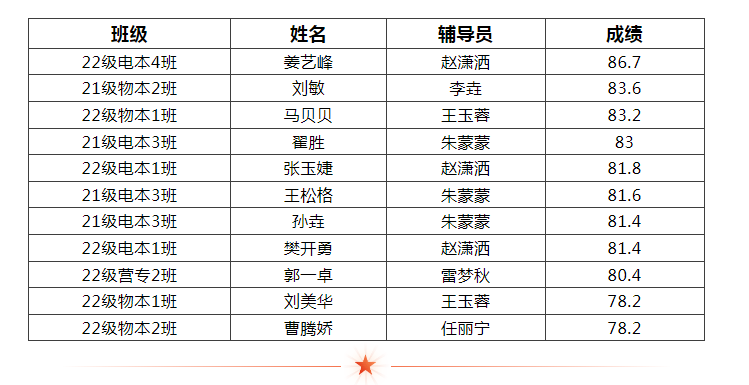 以下公布成功进入决赛的选手名单及成绩: