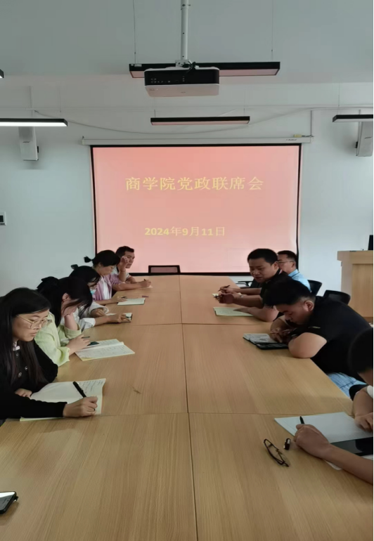 9月11日上午,商学院召开党政联席会议,会议围绕党建、就业、课程建设、专业建设等工作展开。参会人员有院长白朋飞、党委书记郭峰、教学秘书马巧丽、行政秘书郗艳花,组织员杨利凯及各党支部书记参会。