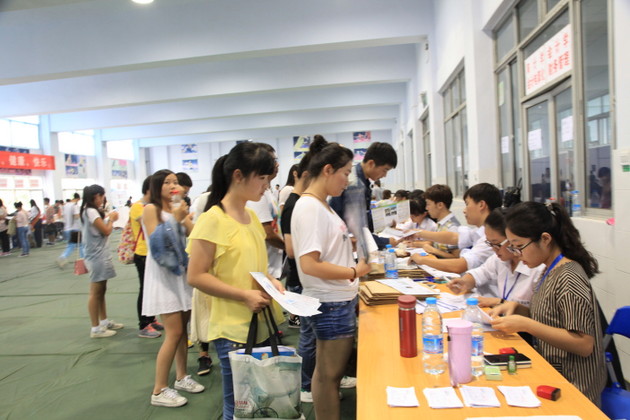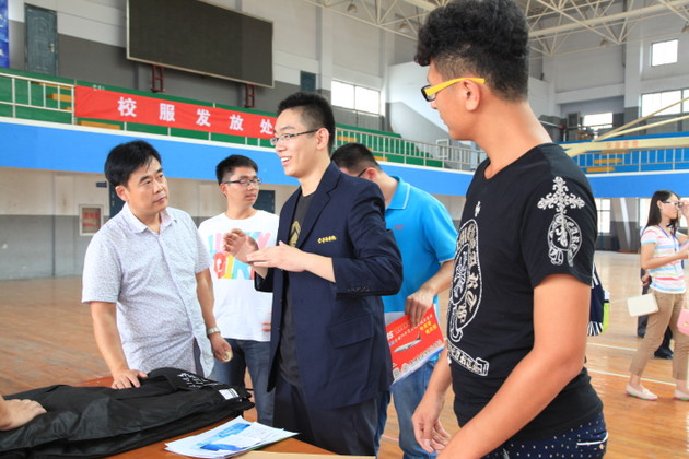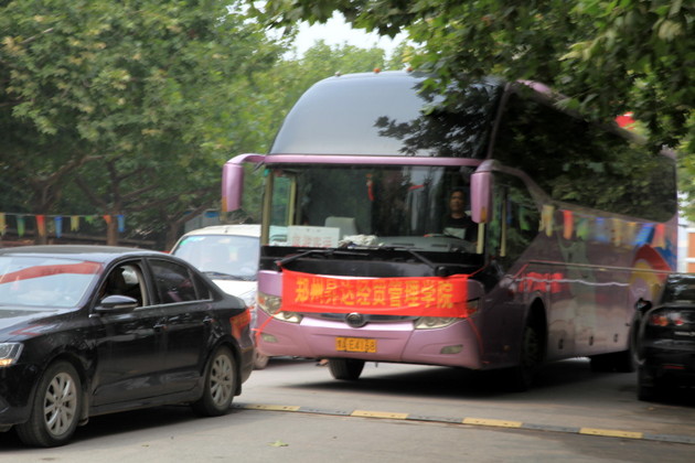今年的迎新工作准备充分,颇具特色。特制的30块“优秀校友”展板竖立在主干道两旁,印有升达办学理念、校训等内容的小彩旗迎风飘扬。为方便新生顺利到校,学院组织数部豪华客车,由体育部老师和国旗班同学组成服务分队,开赴郑州火车站,一批又一批的把新生安全接回学校。在校内,各部门主管在接待现场协调接待工作;各系迎新服务队员引导新生办理报到、注册、缴费、领取公寓用品等手续;学生资助中心认真为新生和家长讲解服务;学务处安排组织风纪部同学在校内维持报到秩序;各系“爱心车队”满载着大大小小的行李,穿梭在校园各个角落;总务处组织承训部队教官及安保人员负责疏导工作,特设“临时通道”,以确保接送新生车辆安全畅通入校;健康中心派出医疗小组及时提供医疗服务;伙食科为新生和家长精心准备了免费的板蓝根、栀子、绿豆等4种口味的茶水;学院还安排学生家长在思源会馆休息区内观看专题片《飞升腾达育菁莪》、参观校史馆;升达园内形成了一道道靓丽的风景线。