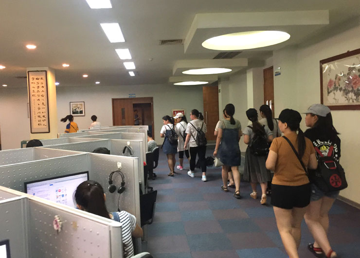 自6月10日校园开放月以来,来我院参观考察的师生、家长络绎不绝。来自焦作、济源、濮阳等地中学领导、师生和家长200多人到我院交流学习,学院招生办热情接待了来校师生和家长。为了迎接参观的师生和家长,招生办组织了一系列丰富多彩的活动,全方位的展示了我院的办学特色、办学规模以及近年来取得的成绩。来访师生在招生助理的陪同下,观看了我院宣传片,对我院的办学情况有了初步了解,之后参观了校园图书馆,同声传译实验室,3D实训中心,学生宿舍等处,到访之处受到了我校师生的热情接待。