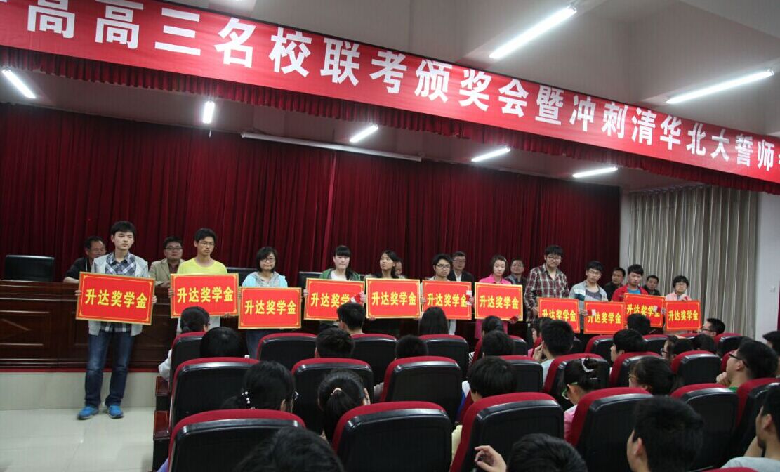 刘景向处长代表学院向项城一高多年来对升达学院发展给予的大力支持表示感谢,对项城一高的校园文化建设、办学水平和取得的成绩给予了充分的赞扬。刘处长与项城一高林校长共同签署了生源共建基地协议,并向项城一高颁发了“郑州升达经贸管理学院生源共建基地”的匾牌。在项城一高联考表彰会上,刘处长向50名优秀学子颁发了“升达奖学金”,并预祝项城一高学子在今年的高考中取得优异的成绩。