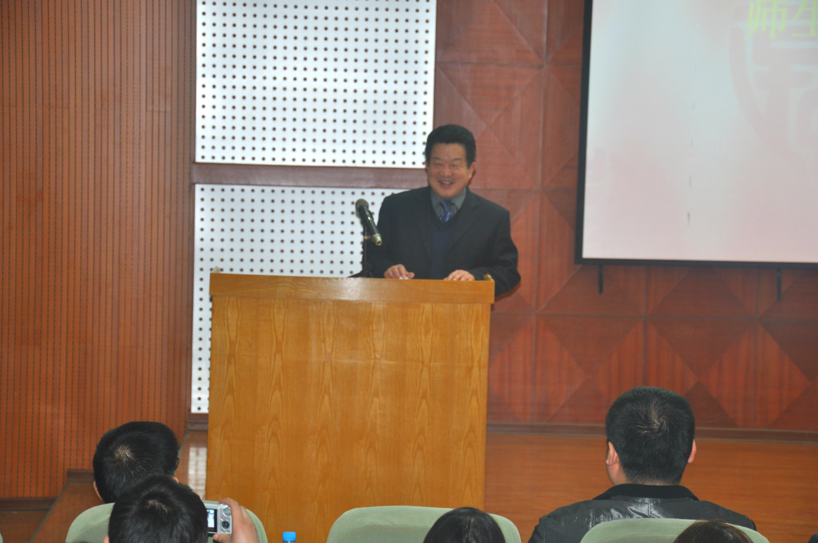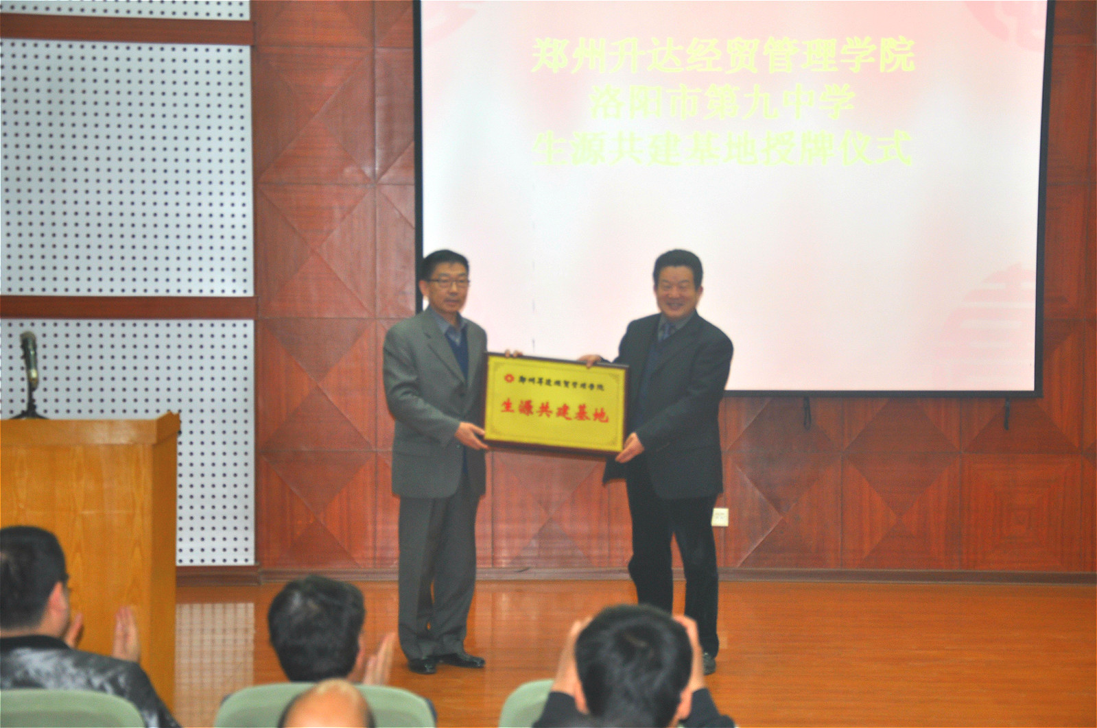 洛阳市第九中学校长张汉文随后也做了讲话。他首先对我院的热情接待表示了感谢,对学院的办学条件进行了赞扬,并他对洛阳市第九中学的基本办学情况做了介绍:“洛阳市第九中学在教育竞争日趋激烈的今天,独辟蹊径,注重艺术教学的培养,学校学生不仅开设普通课程,在此基础之上还开设音乐、绘画等艺术类课程。我们的办学理念是要分数更要兴趣、要成才更要成人,要学习更要幸福。看到升达这么好的办学条件,我们两家如此契合的办学理念,我们和贵校合作,向学院输送更多的学生。”