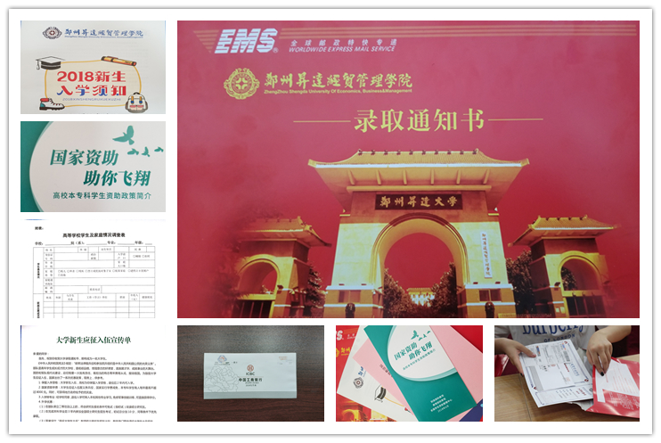 我校2018年录取通知书EMS邮寄包裹内容: