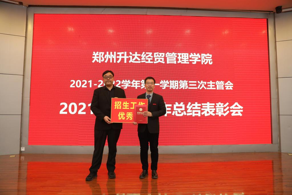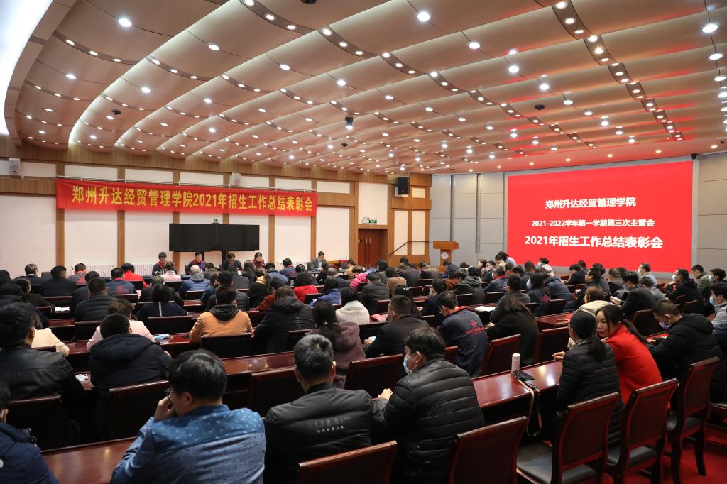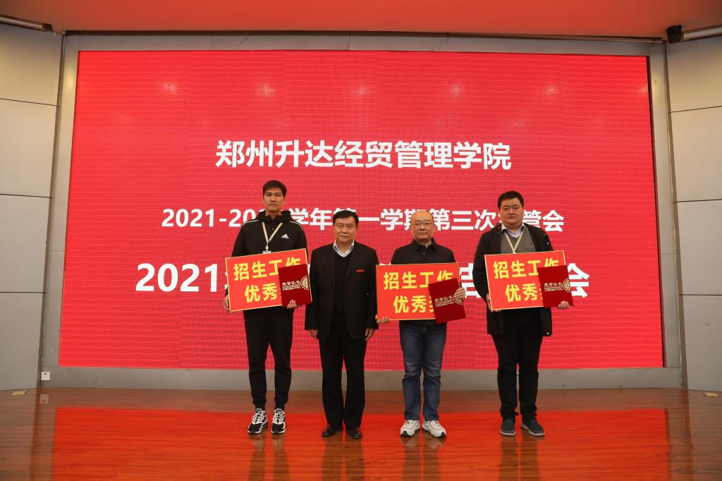 11月25日,我校2021年招生工作总结表彰会在国际会议厅隆重举行。我校执行董事王新奇、校长郭爱先、副校长兼工会主席张金安、副校长兼教务长吴益民、副校长兼总务长张其武等校领导出席会议,学校各行政部门主管,各二级学院院长、书记及各招生团队成员等参加了会议。会议由校长郭爱先主持。