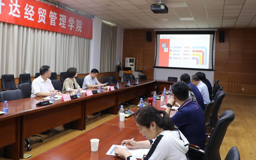 会议伊始,由招生办公室主任刘景向汇报我校招生工作进展情况,目前省内外各批次录取完成情况整体较好。刘景向重点汇报了我校普通本科两次模拟后的投档情况,并根据投档情况提出了录取方案意见。与会领导针对我校二本投档情况进行深入研究,对招生办提出的录取建议进行讨论,最后集体决议,同意招办提出的录取建议,并要求认真落实上级招生政策,依法依规开展学校招生计划。