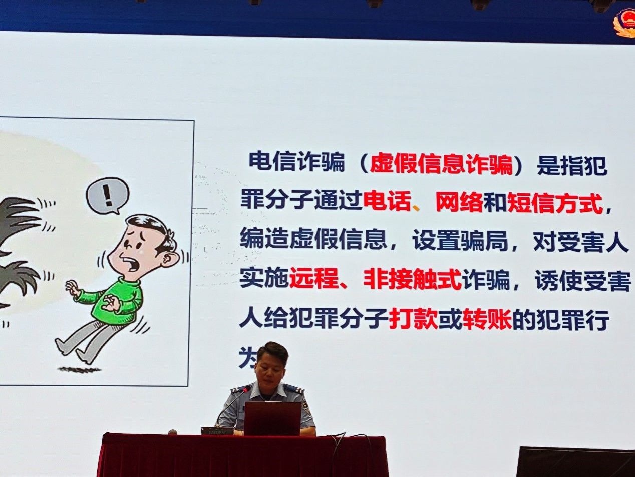 为筑牢校园安全防线,提升师生反诈意识与安全素养,9月18日下午,学校特邀龙湖镇派出所大学办反诈先锋民警吴文渊入校,面向全校近2000名师生员工,开启意义重大的“反诈第一课”安全知识宣讲活动。