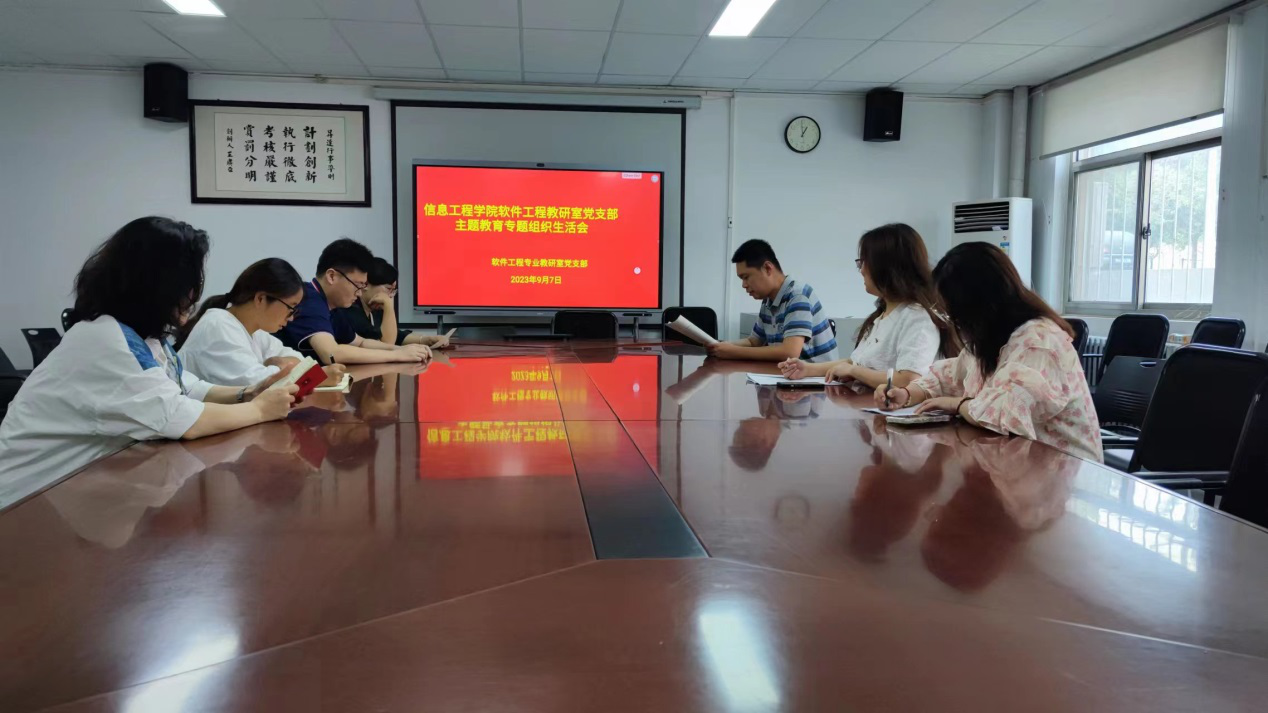 9月7日中午,信息工程学院软件工程教研室党支部组织召开主题教育专题组织生活会。会议由党支部书记程杰主持,支部全体党员参加会议。