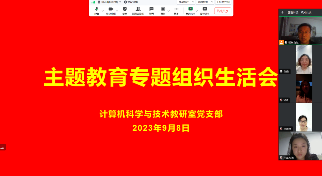 9月8日,信息工程学院计算机科学与技术教研室党支部通过腾讯会议组织召开主题教育专题组织生活会。会议由党支部书记王天顺主持,支部全体党员线上参加会议。