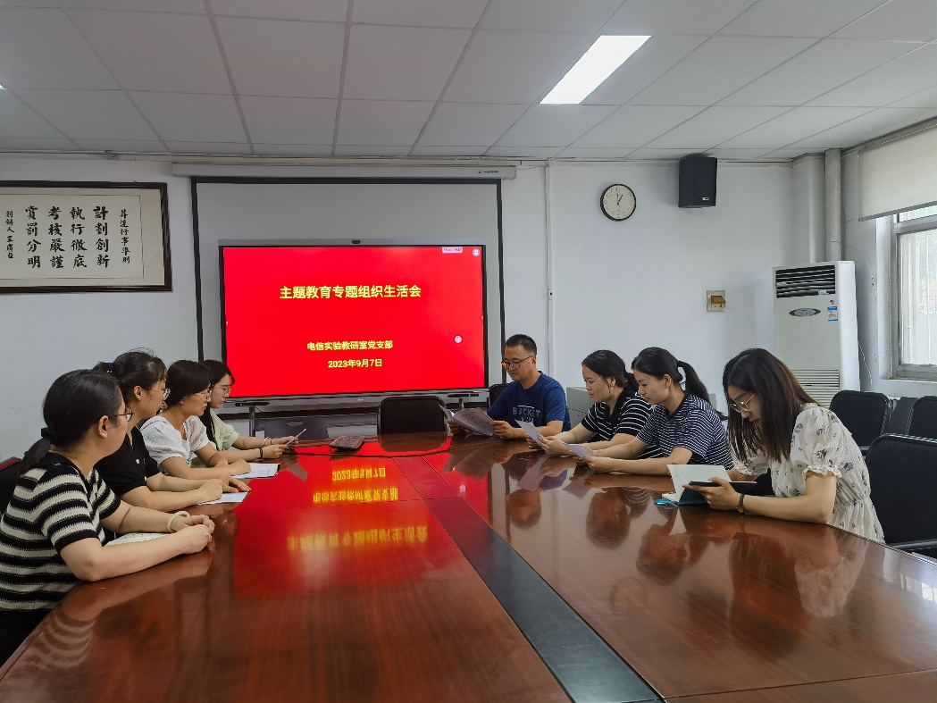 9月7日,信息工程学院电信实验教研室党支部组织召开主题教育专题组织生活会。会议由党支部书记訾涛主持,支部全体党员参加。