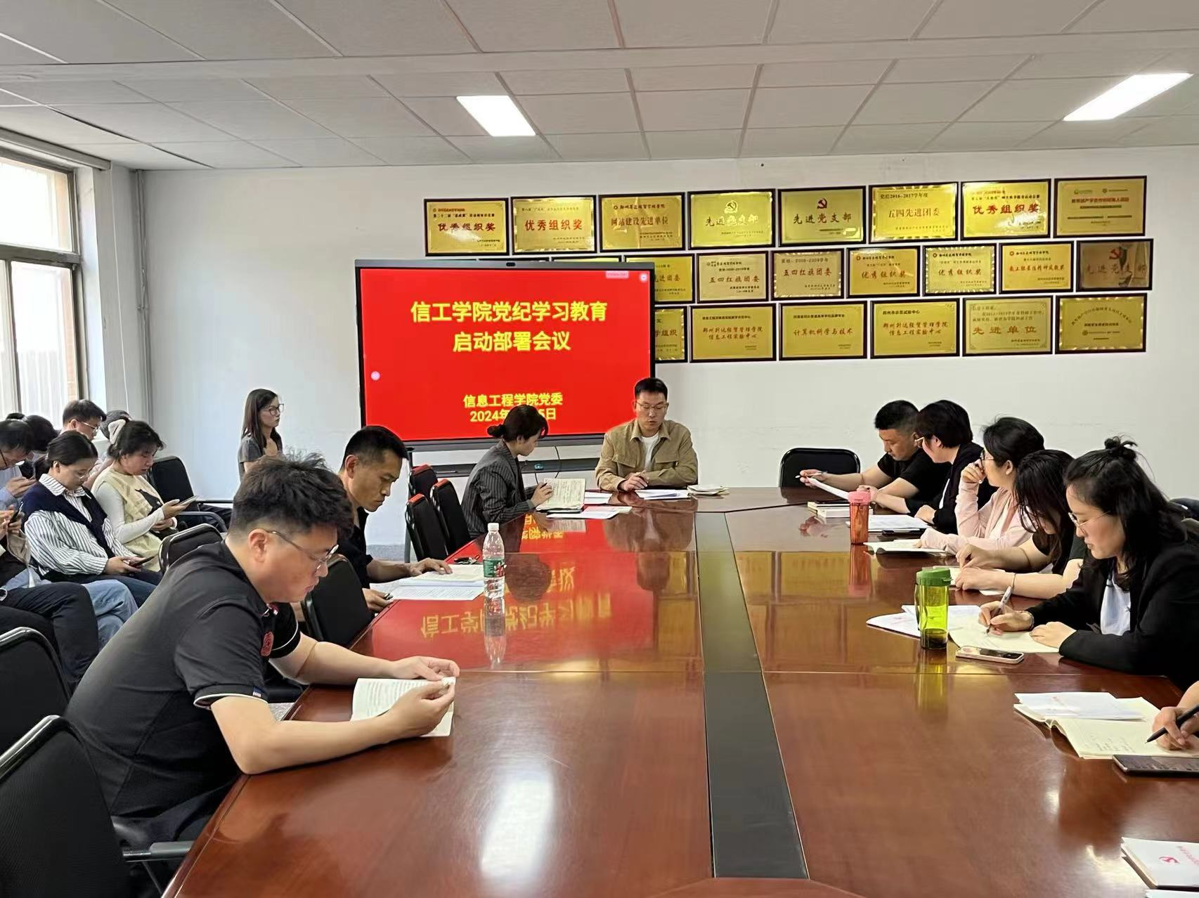 为深入学习贯彻《中国共产党纪律处分条例》,落实学校党纪学习教育工作部署,信息工程学院成立专班并制定学习方案,落实开展党纪学习教育要求。4月25日中午,信工学院在资讯楼104召开党纪学习教育启动部署会议,院党委书记李赵法主持并作动员讲话,学院党委委员、党支部书记及部分教职工参加会议。