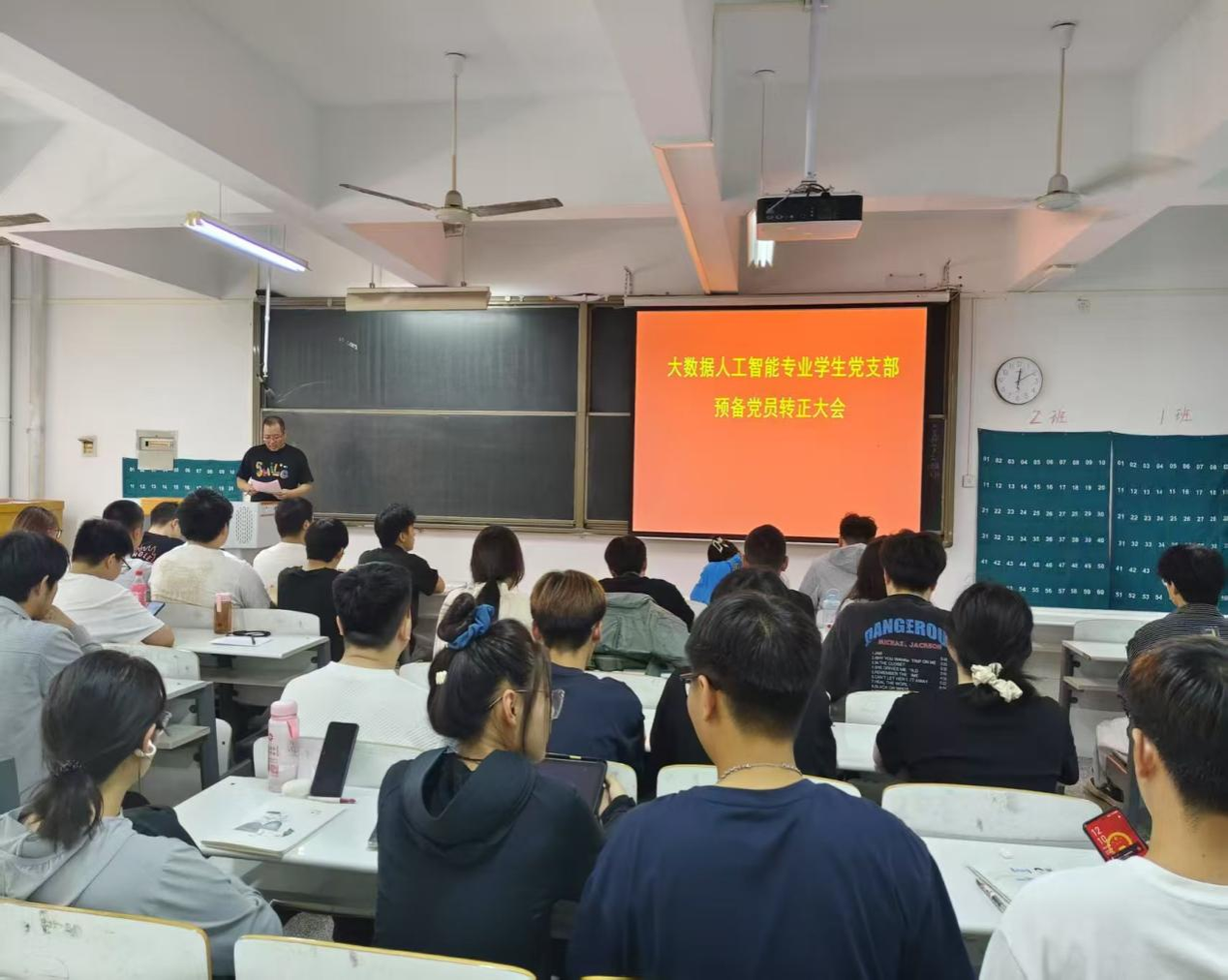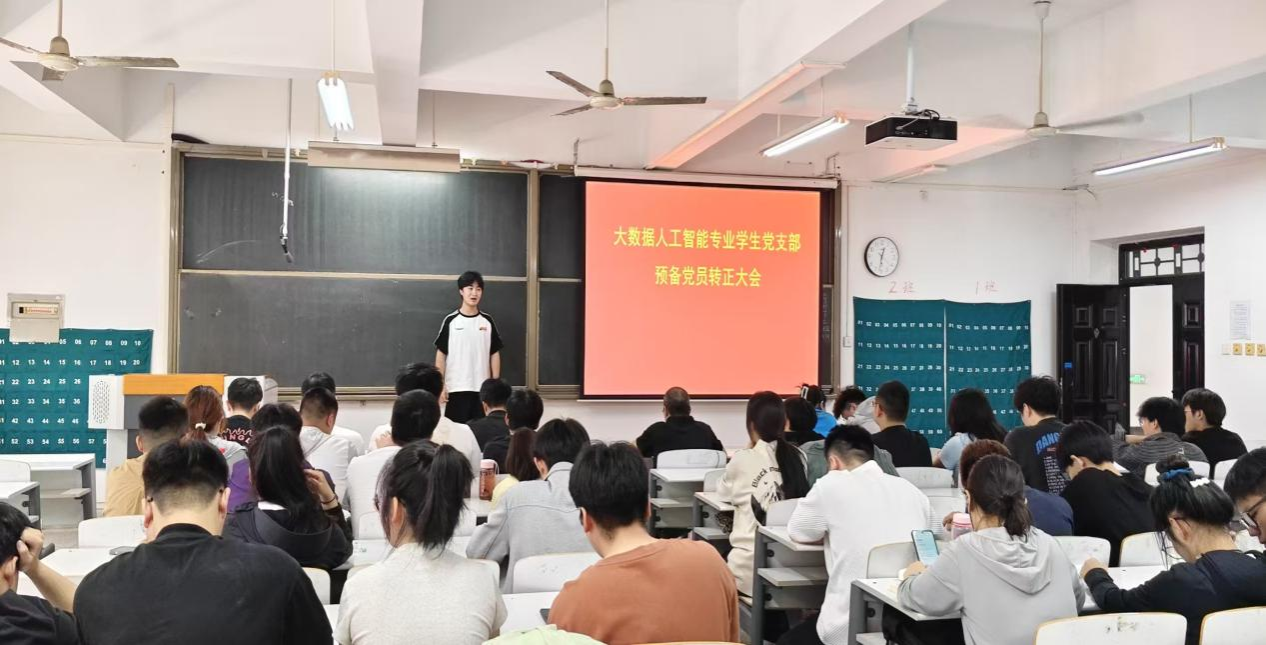 2025年5月13日,信息工程学院大数据人工智能专业学生党支部在资讯楼213会议室召开预备党员转正大会,大会的主要议题是对李一博、任燕燕、李超阳、蒋嘉炜、焦唱凯、王浩宇、李想、王丽月、赵宇航、邵乙格、刘晓盈、金相豪、赵玲苑13名中共预备党员转正问题的讨论和表决。党支部正式党员、预备党员和发展对象出席本次会议,会议由支部书记王建红同志主持。