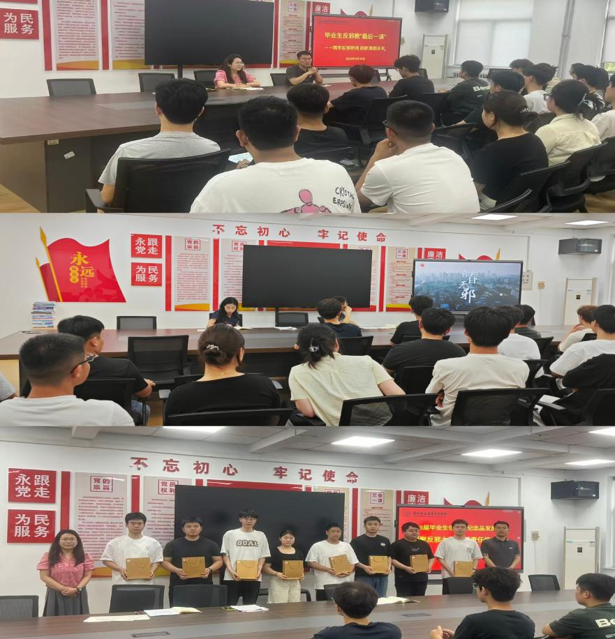 为增强2025届毕业生对邪教组织的鉴别力和防范能力,有效抵御邪教组织对大学生的侵蚀,信息工程学院组织开展毕业生反邪“最后一课”主题教育活动,为毕业生们送上了一份意义非凡的“毕业礼物”。