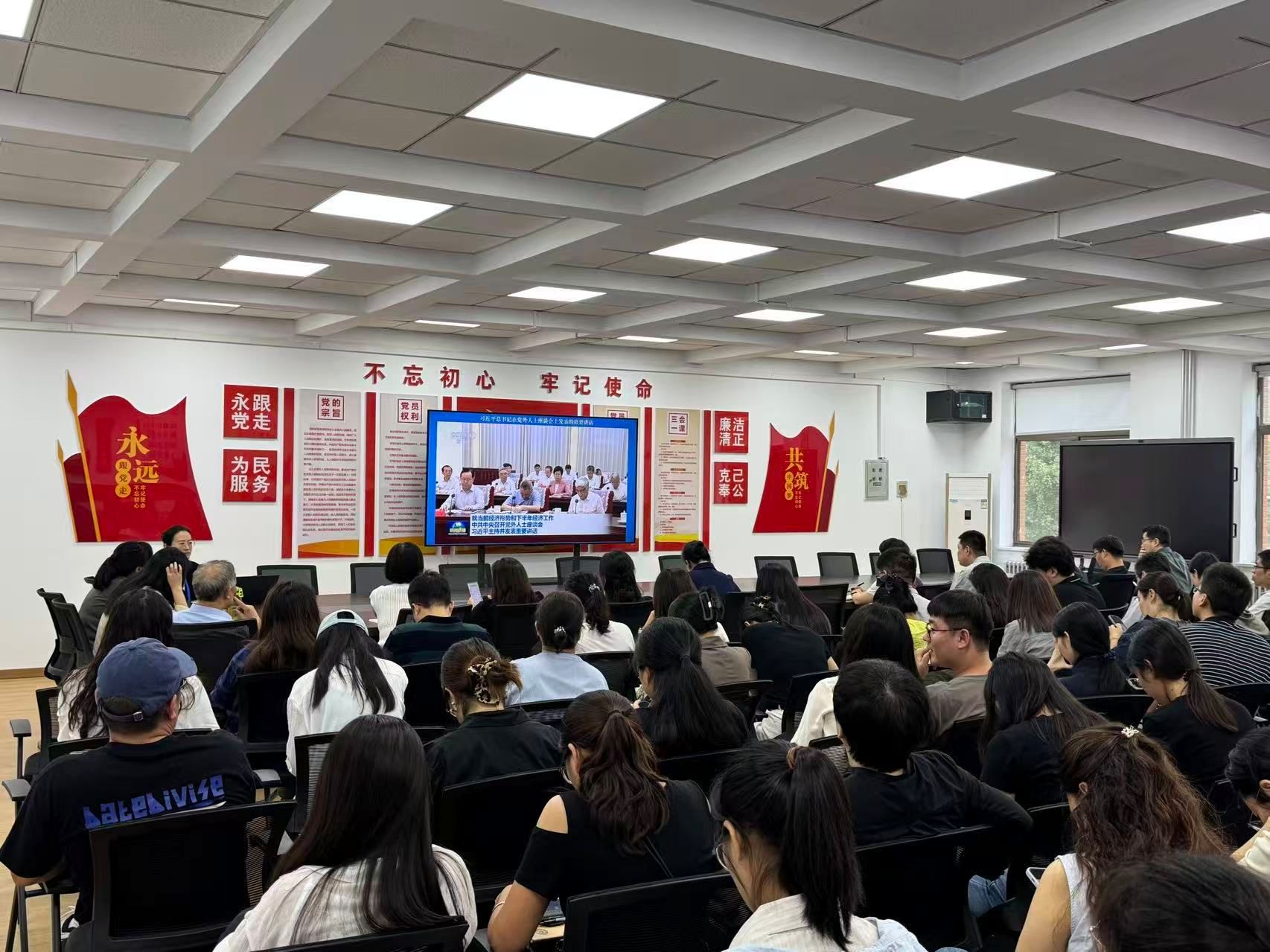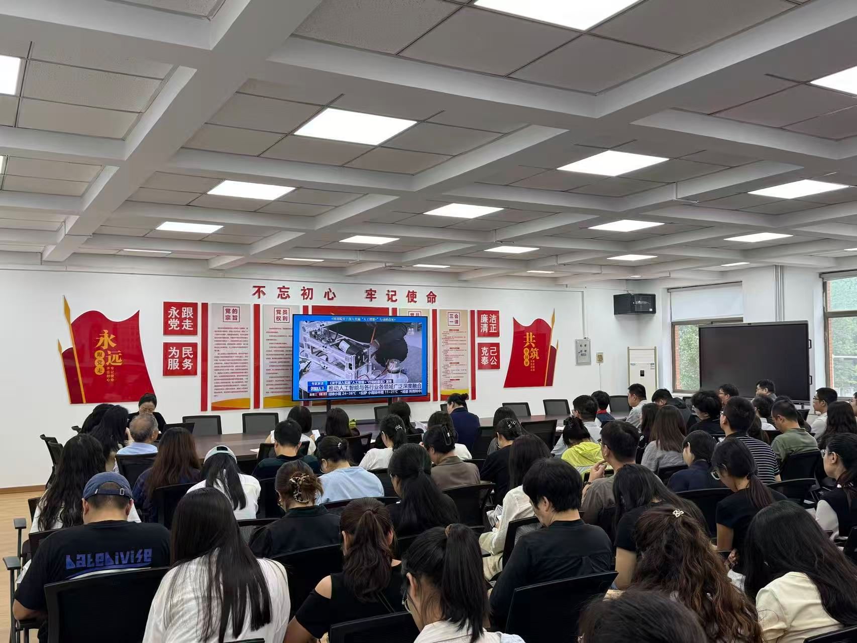 会上,全体教职工集中学习了《国务院关于深入实施“人工智能+”行动的意见》及习近平总书记在党外人士座谈会上发表的重要讲话。通过系统学习,大家对国家在人工智能领域的战略部署以及当前经济社会发展等相关重要精神有了更深刻的理解和把握。