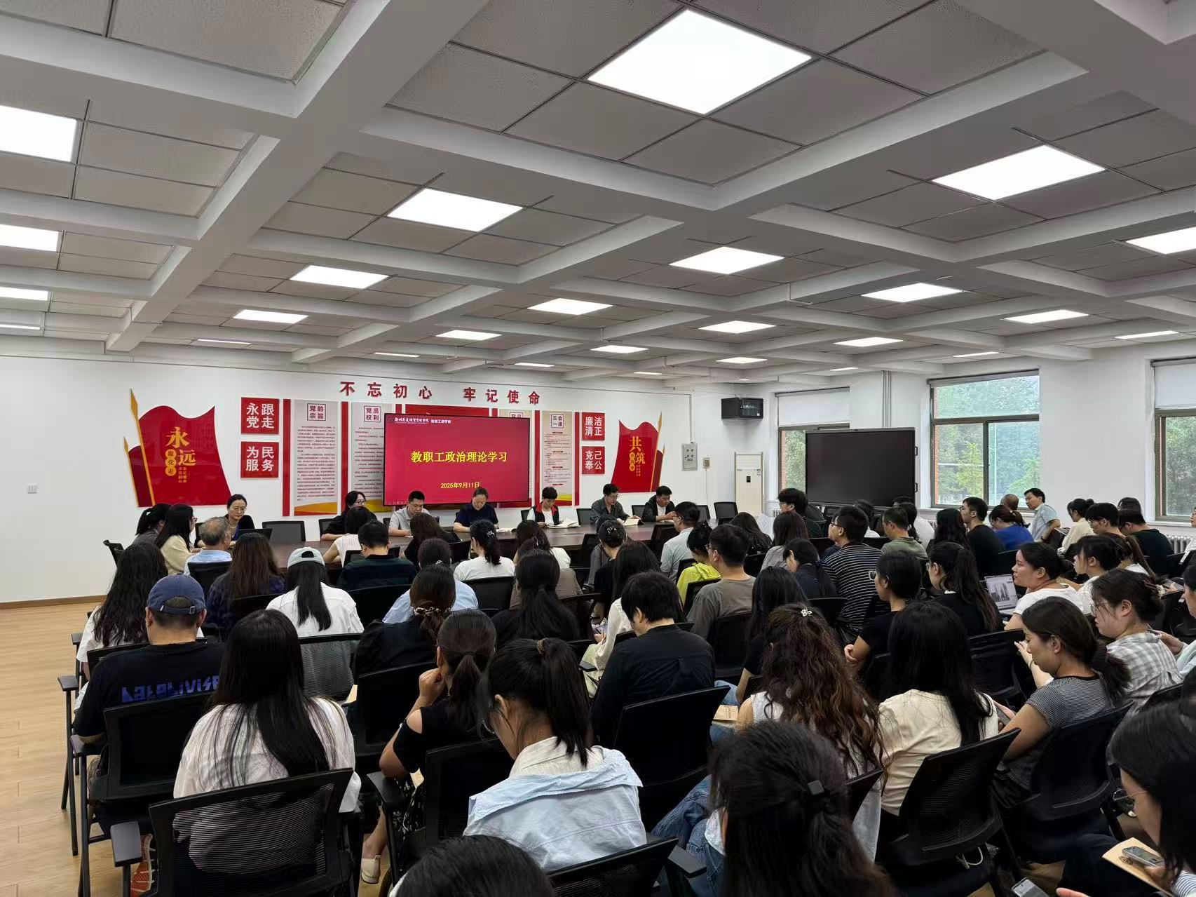 9月11日下午,信息工程学院在商管楼218会议室组织召开2025-2026学年第一学期第一次教职工政治理论学习会议。本次会议由软件工程教研室党支部书记张娟老师主持,学院全体教职工参加。