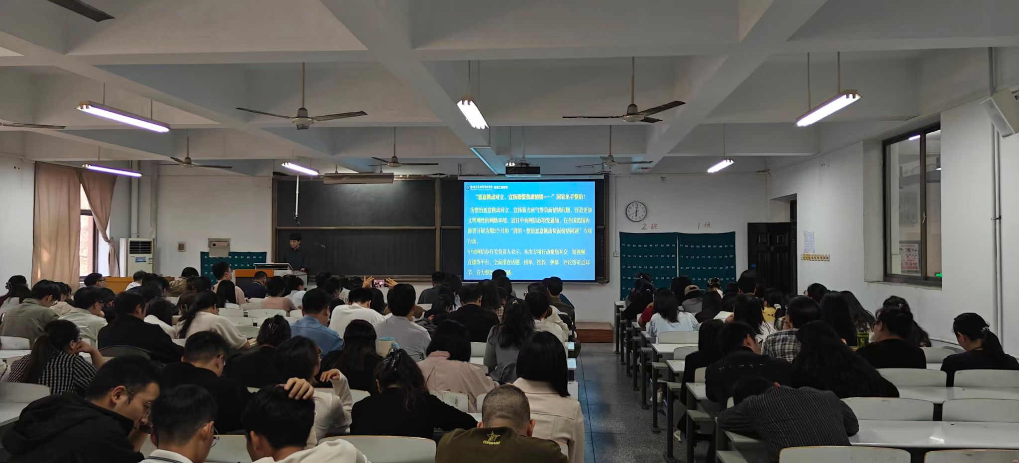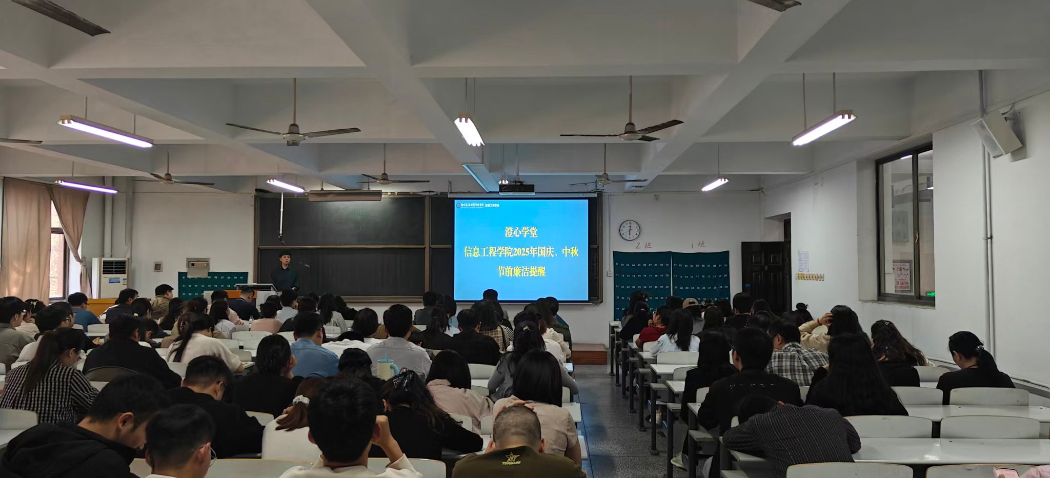 最后,学院党委书记钟江鸽进行国庆、中秋双节节前廉洁提醒,要求全体教职工严格遵守廉洁自律各项规定,确保节日期间风清气正。同时,钟江鸽还传达了中央网信办在全国范围内部署开展为期2个月的“清朗・整治恶意挑动负面情绪问题”专项行动的通知,强调了营造良好网络环境的重要性。