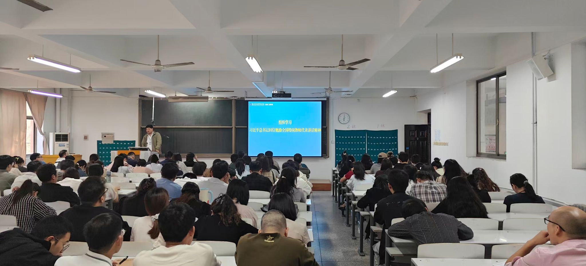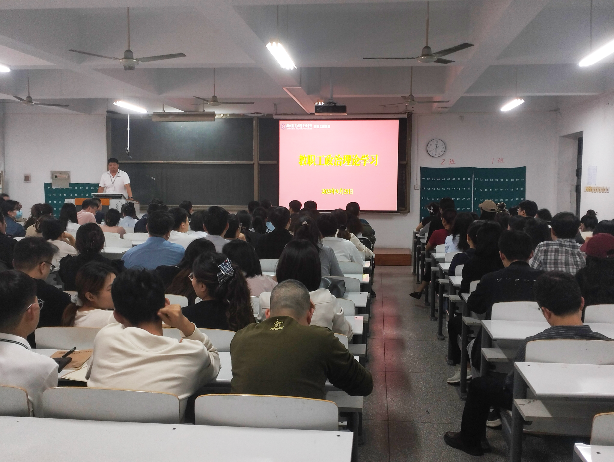 9月25日下午,信息工程学院在资讯楼213召开了2025-2026学年第一学期第二次教职工政治理论学习会议。本次会议由智能科学与技术教研室主任齐雷老师主持,学院全体教职工参加。