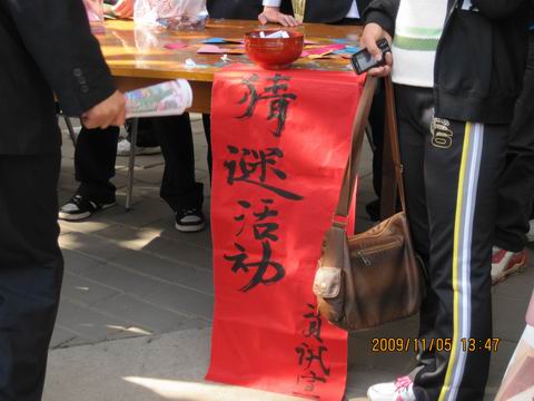 为了加深同学们对文明礼貌的理解,使我院学生以文明、礼让的风貌展现在社会面前,资讯系积极响应上级领导的号召,并结合我系特色,于11月5日在更生路举办了形式新颖的“文明礼貌月—猜灯谜”活动。