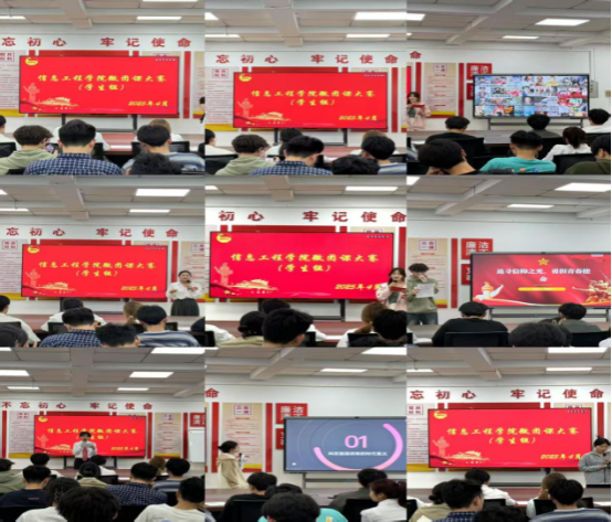比赛现场,来自信息工程学院不同年级、不同专业的参赛选手们轮番登场,围绕“青春心向党”“科技创新与青年担当”“新时代团员的使命”等主题,结合专业特色与生活实际,用生动的语言、鲜活的案例和新颖的形式,为在场观众带来了一堂堂精彩纷呈的