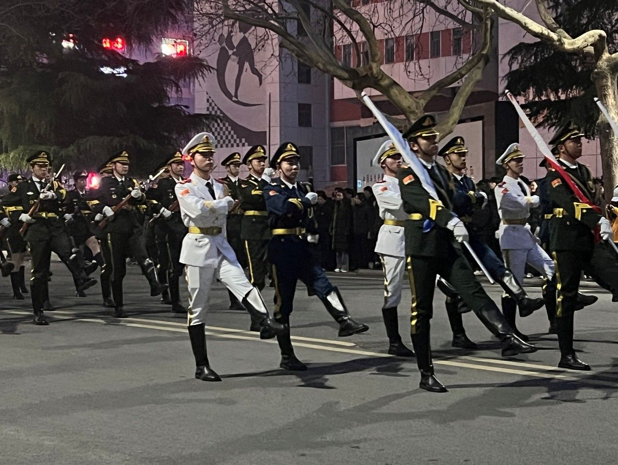 “升国旗,奏国歌,全体师生行注目礼!”激昂的国歌声骤然响起,升旗手有力地将国旗抛出,五星红旗冉冉升起。全体师生庄严肃立,面向国旗行注目礼,目光追随着缓缓上升的国旗,眼神中满是对祖国的热爱与敬意。这一刻,整个现场安静肃穆,只有激昂的国歌声在校园上空回荡。