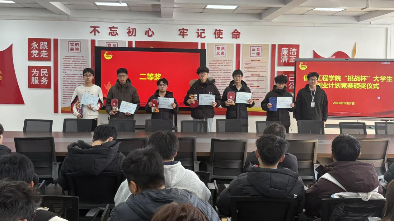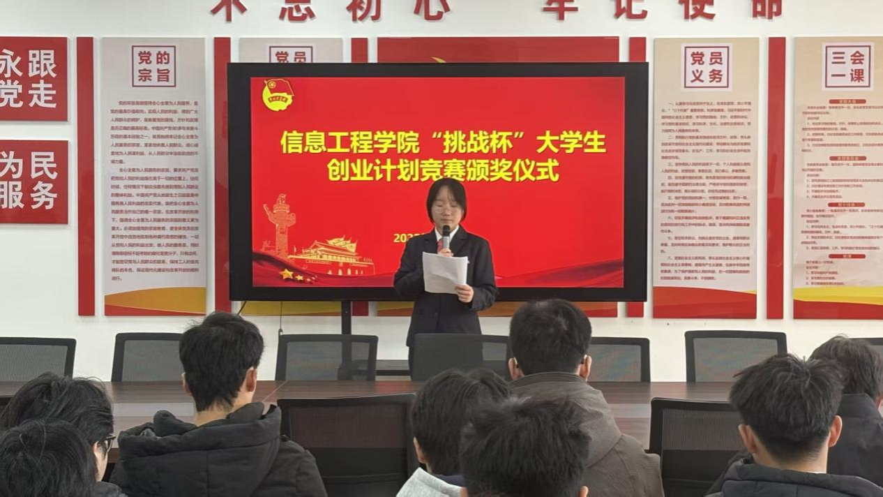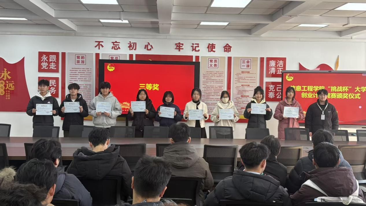 12月3日中午12时20分,信息工程学院“挑战杯”大学生创业计划竞赛颁奖仪式在商管楼218会议室圆满落幕。本次竞赛聚焦科技创新、乡村振兴等赛道,经层层评审,29个项目团队的青年学子登台领奖,展现了信工学子的创新活力与创业热忱。